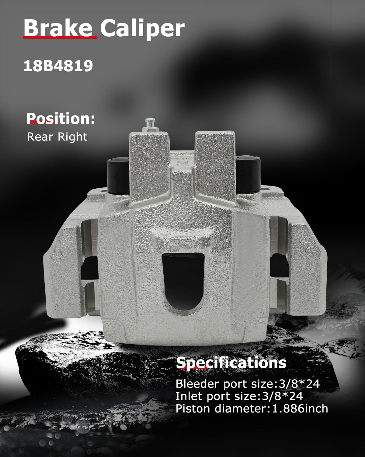 – 1 Conjunto de Caliper de Freio a Disco com Suporte (18B4819, 18-B4819, 18-4819, 184819, Lado Traseiro Direito do Passageiro)