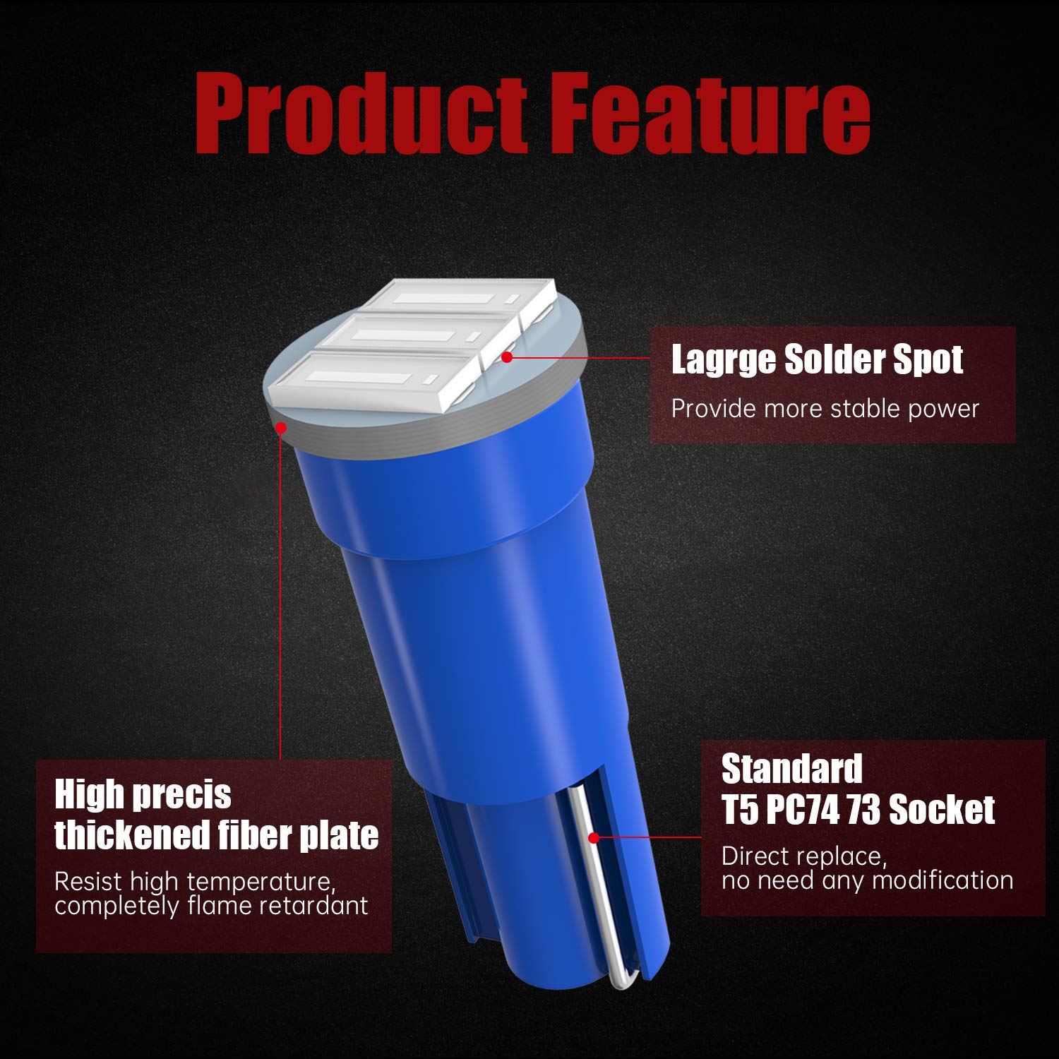 - Aplicação: Ideal para substituir luzes com base T5, como indicadores do painel de instrumentos, luzes do velocímetro, luzes do tacômetro, cluster de medidores, indicador de verificação do motor, indicador de luz alta, luzes do câmbio, etc.
