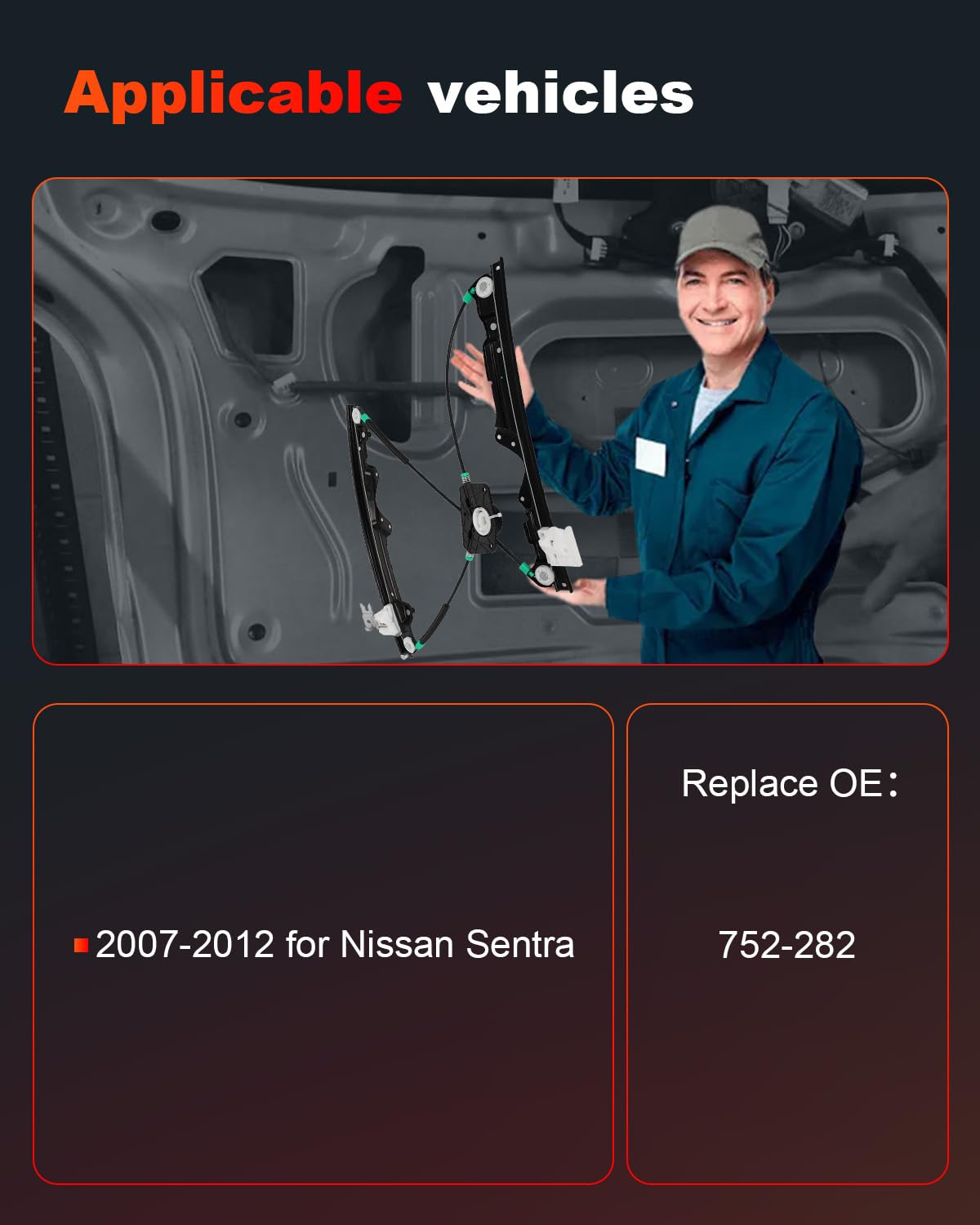 - VEÍCULO ADEQUADO: O regulador de janela elétrica é compatível com os modelos Nissan Sentra dos anos 2007, 2008, 2009, 2010, 2011 e 2012, oferecendo uma solução sob medida para suas necessidades.