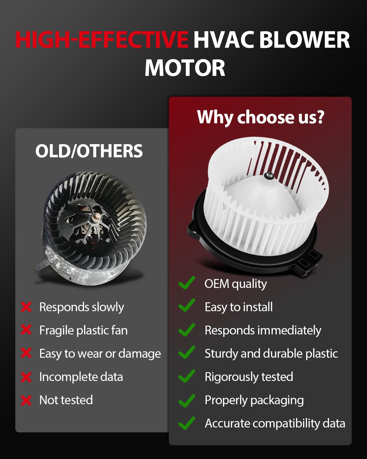 Na produção deste ventilador, as dimensões são rigorosamente respeitadas de acordo com os padrões originais de fábrica. Os componentes de alta qualidade utilizados são projetados para um tipo de plug-in, facilitando a instalação. O motor e o ventilador (roda) são pré-balanceados para garantir uma montagem e desempenho ideais. Materiais premium e subconjuntos proporcionam máxima durabilidade e resistência, tornando este produto uma escolha confiável para substituição.