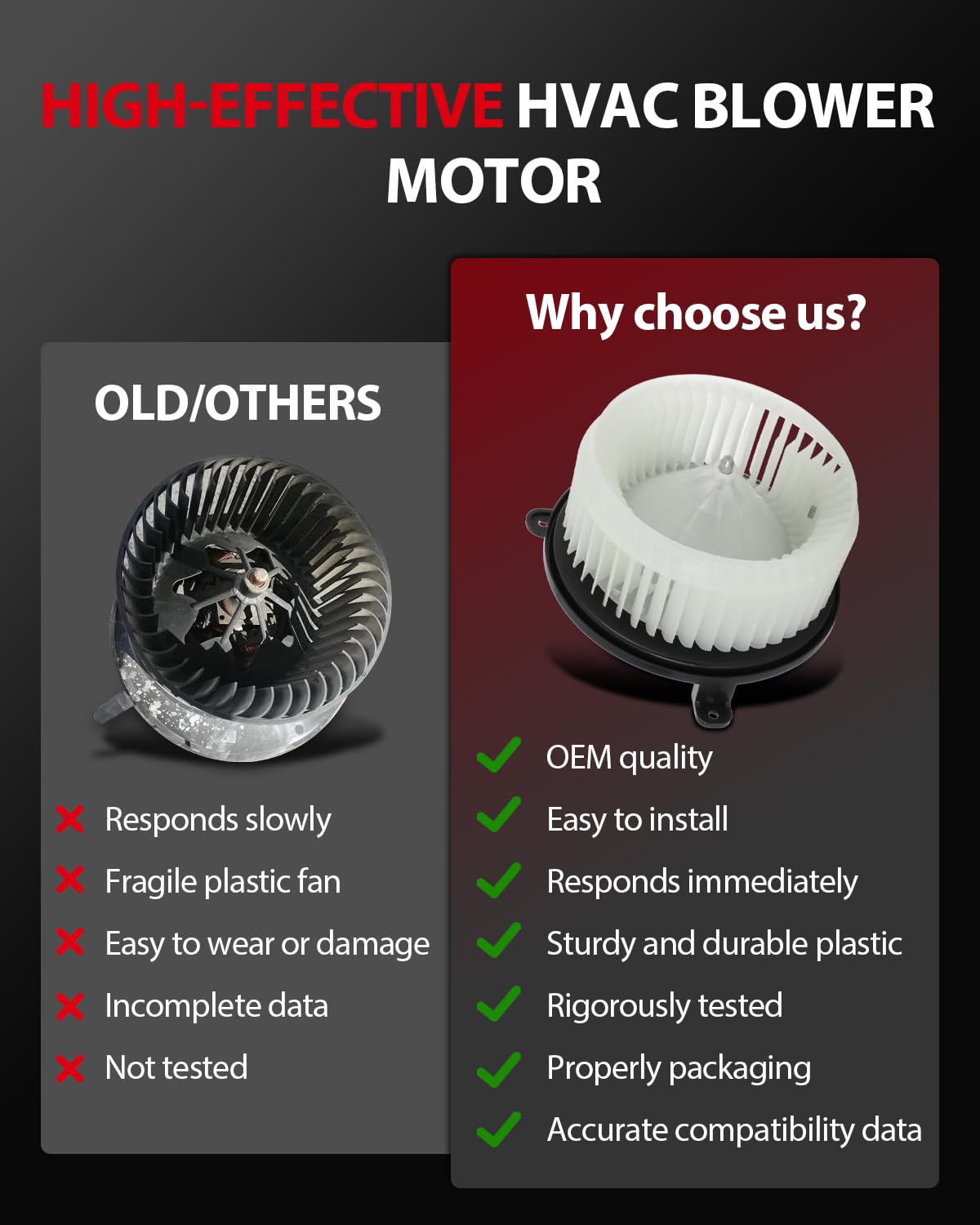FITMENT para OS SEGUINTES VEÍCULOS: O motor de ventilador de aquecimento é projetado especificamente para os modelos Toyota Sequoia (2008-2017) e Toyota Sienna (2011-2017), assegurando que a instalação seja simples e sem complicações.