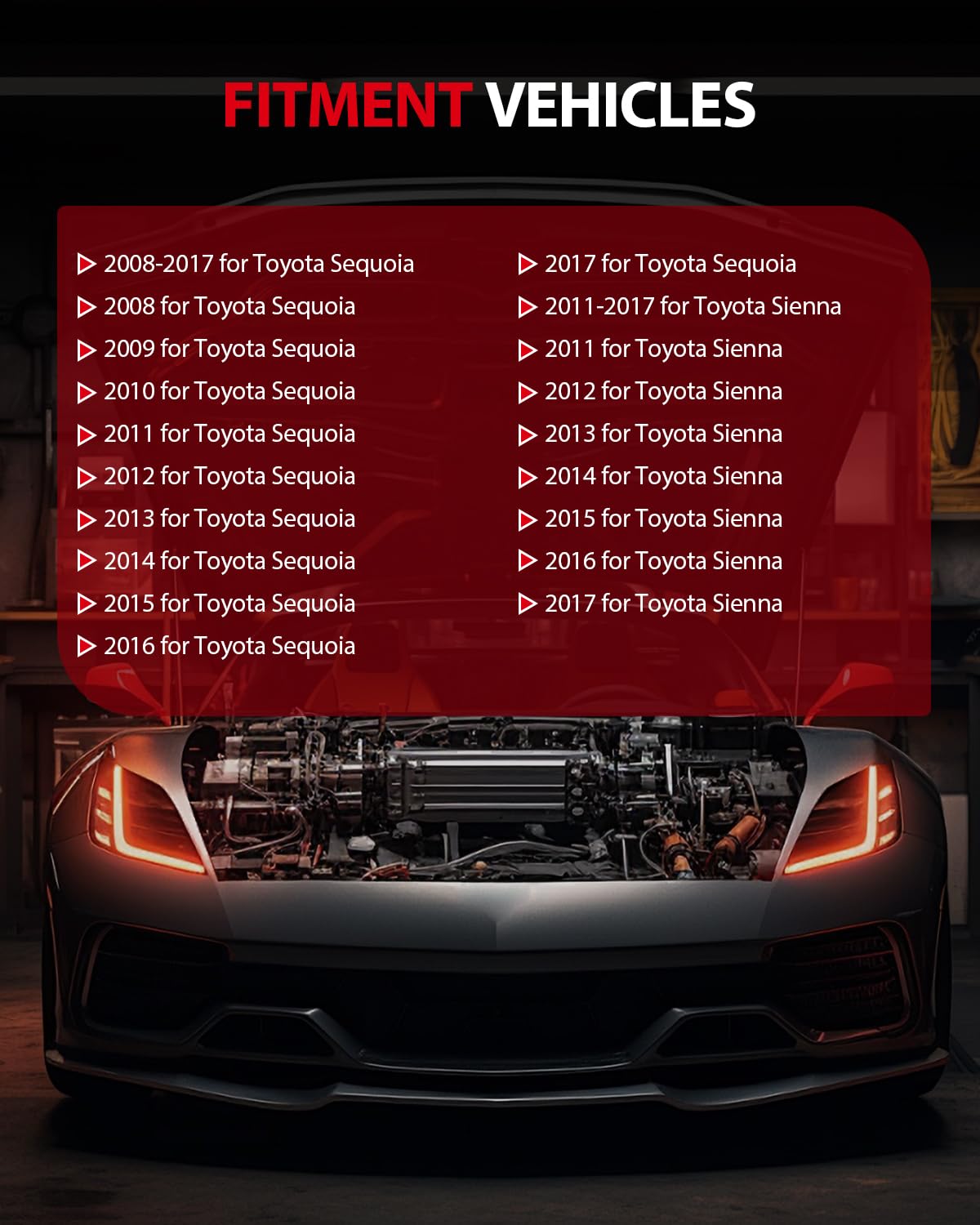 – Compatibilidade: Projetado para Toyota Sequoia (2008-2017) e Toyota Sienna (2011-2017).
