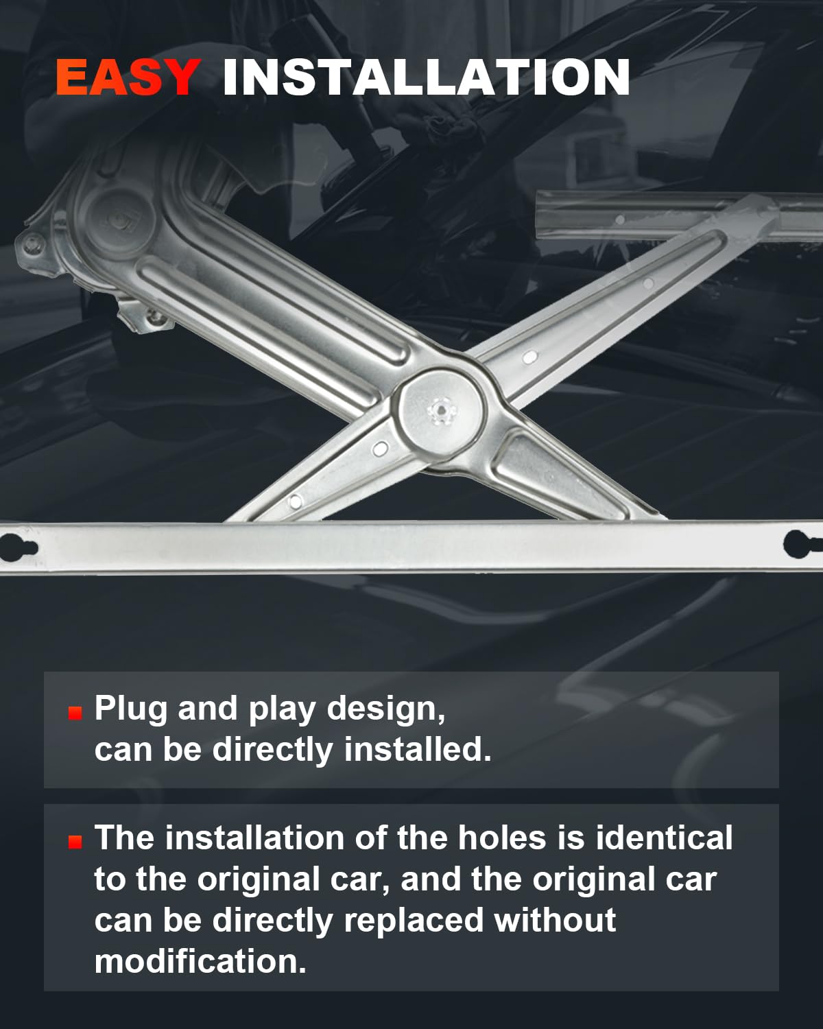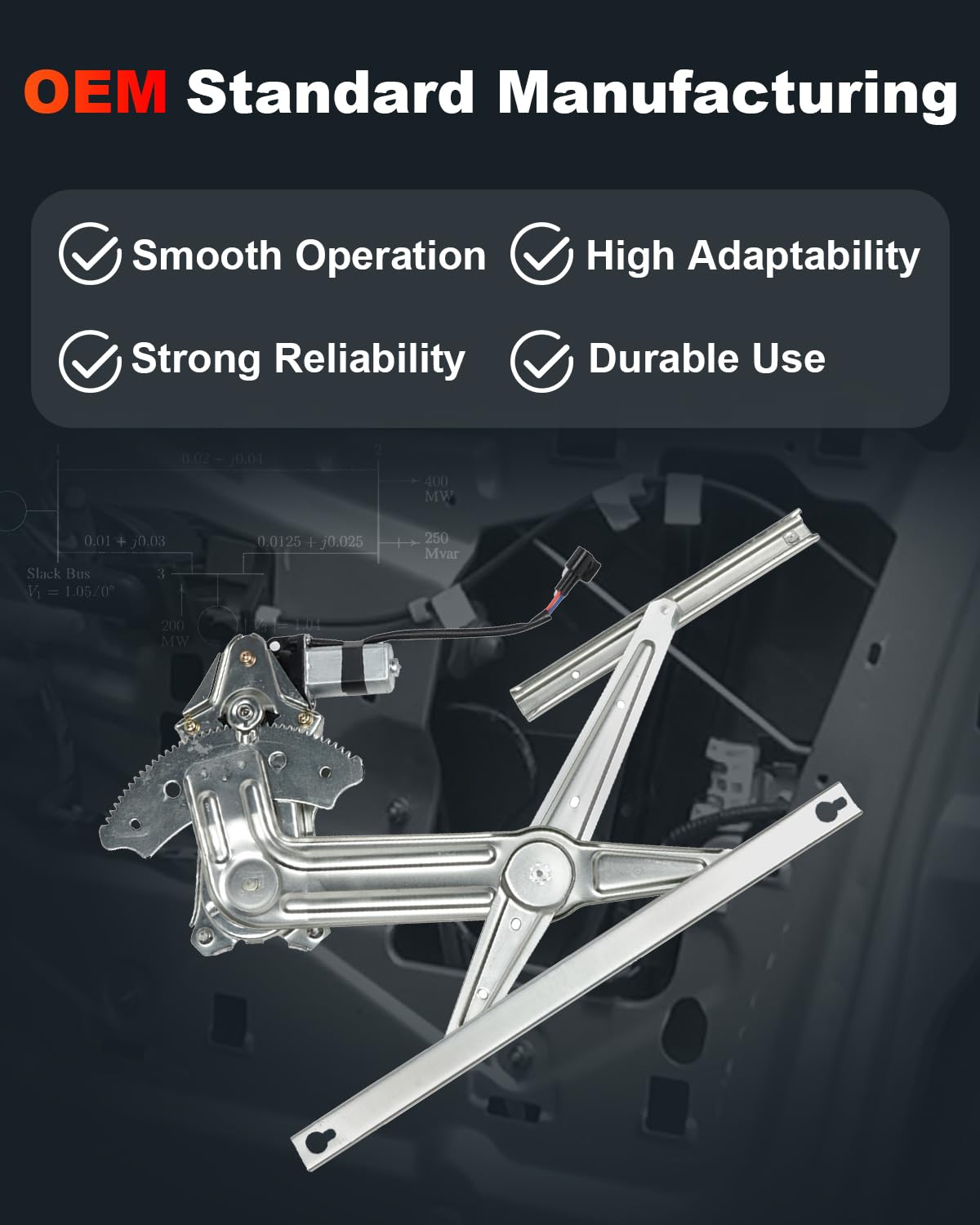 - Substituição OE: O Regulador de Janela foi avaliado milhares de vezes em portas de carros reais para verificar sua durabilidade e desempenho sob cargas cíclicas, com operação de levantamento suave e fácil ajuste.