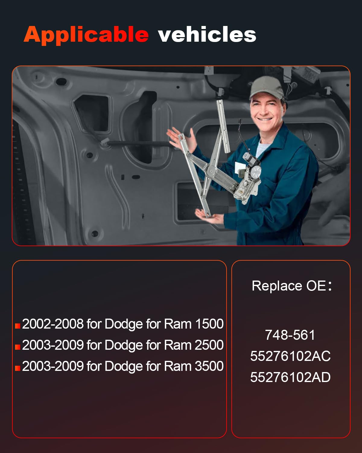 - Compatível com: 2002 a 2008 para Dodge Ram 1500, 2003 a 2009 para Dodge Ram 2500, 2003 a 2009 para Dodge Ram 3500. Regulador de Janela de Substituição com Motor.
