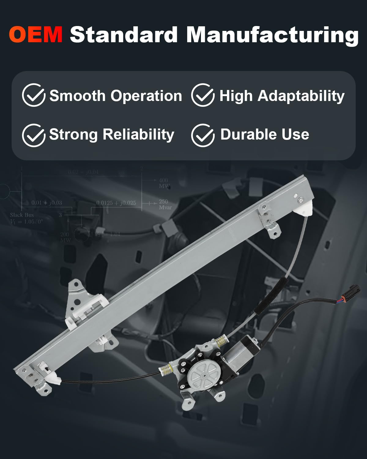 O regulador de janela cciyu com motor de substituição para a Nissan Frontier, anos 2000 a 2004, é a solução ideal para quem busca qualidade e confiabilidade na reposição de componentes automotivos. Este regulador é compatível com os modelos de 2000 a 2004 da Nissan Frontier, especificamente para o lado traseiro esquerdo (lado do motorista). Com o número OEM 748-922, este regulador de janela foi projetado para oferecer uma instalação simples e eficiente, sem a necessidade de emenda de fios, garantindo uma instalação plug and play que se encaixa perfeitamente no local original.