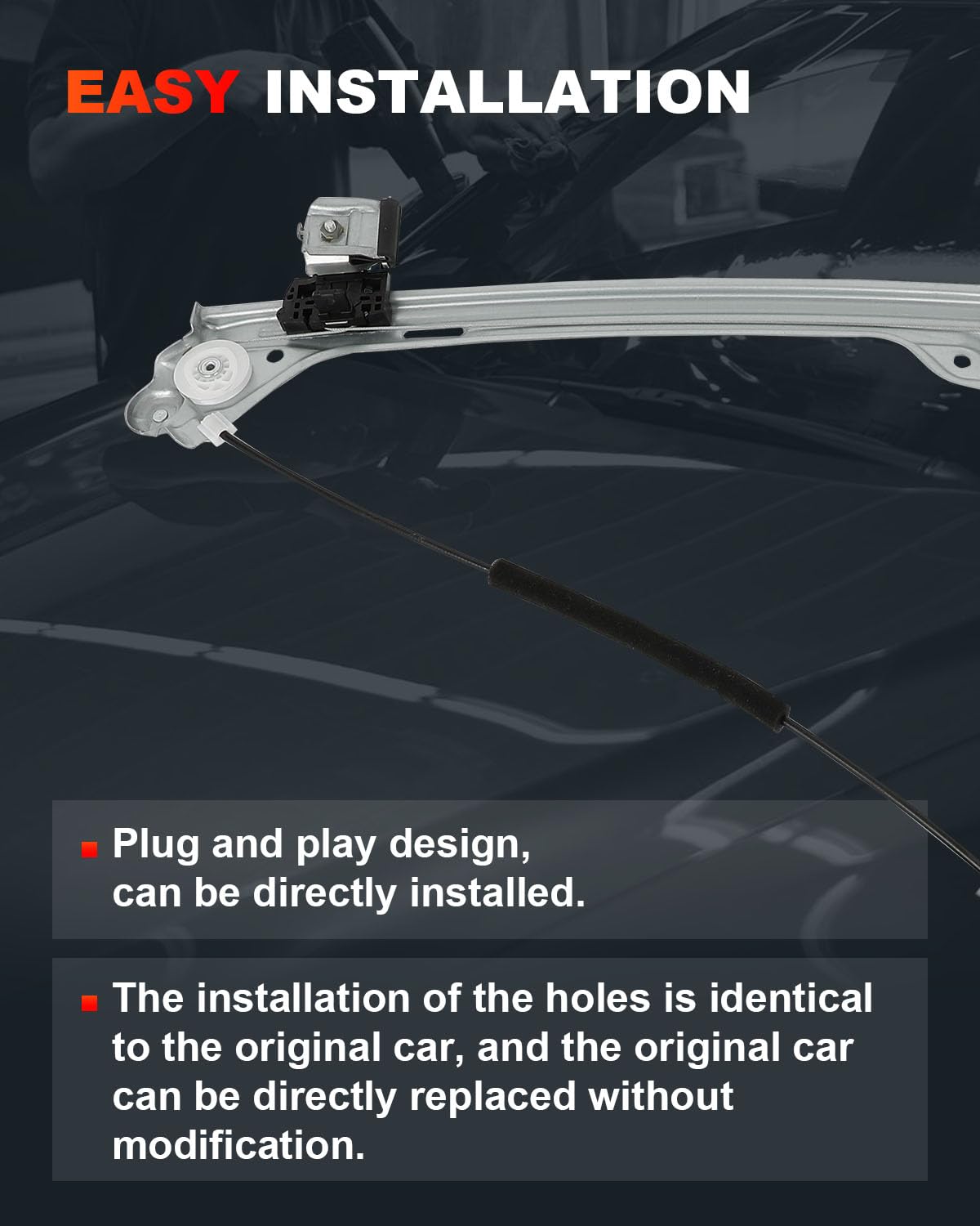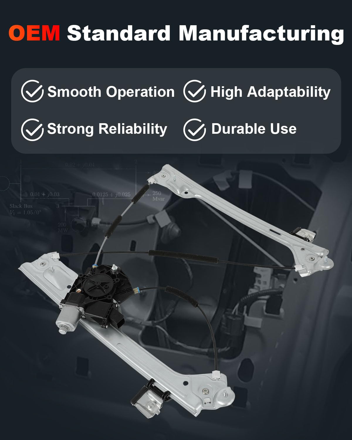 - Substituição OE: O Regulador de Janela com Motor foi avaliado milhares de vezes em portas de carros reais para verificar sua durabilidade e desempenho sob cargas cíclicas, proporcionando uma operação de elevação suave e fácil ajuste.