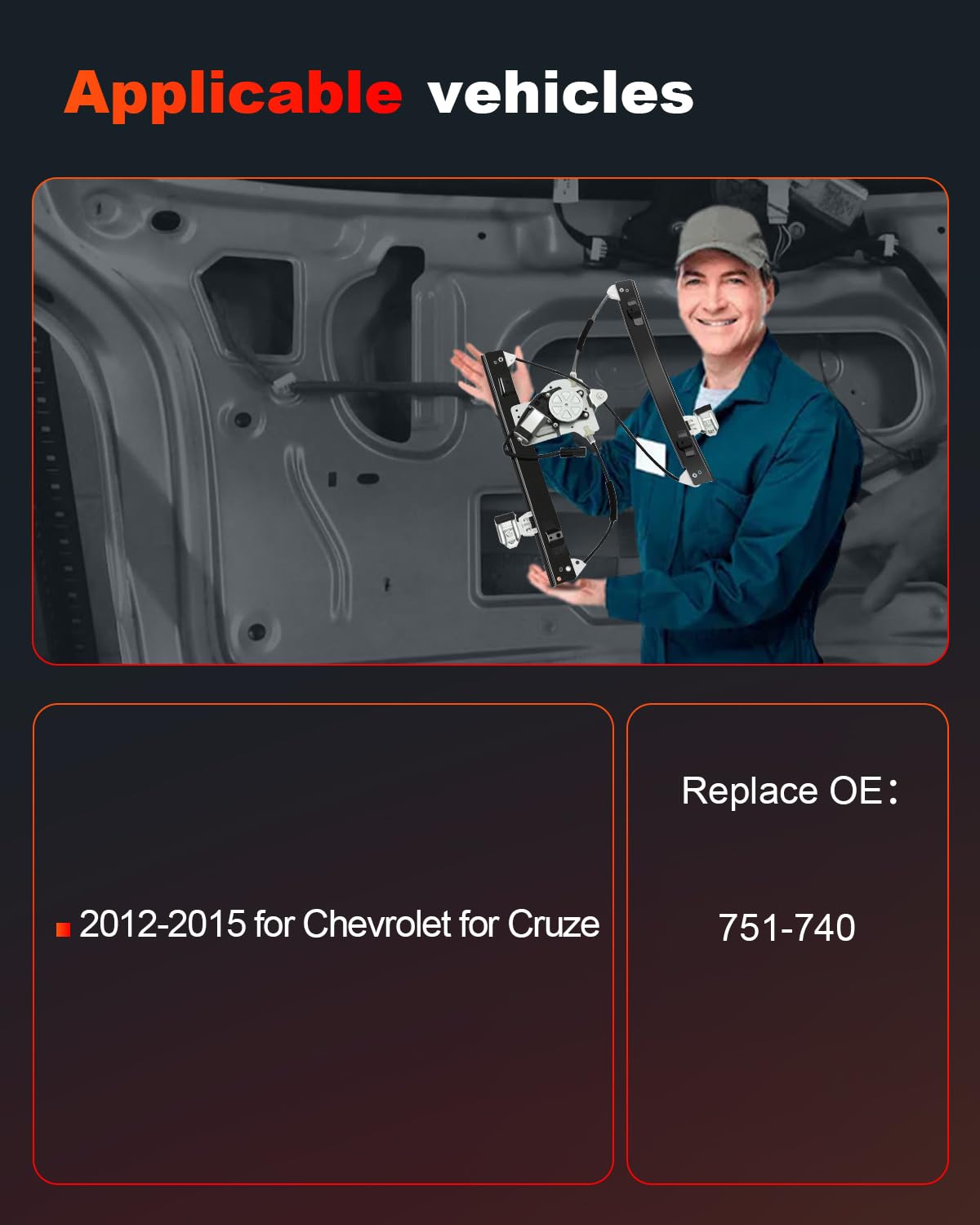 - Compatível com: Modelos de 2012, 2013, 2014 e 2015 do Chevrolet Cruze. O regulador de janela com motor é uma substituição direta, garantindo que você tenha um ajuste perfeito.