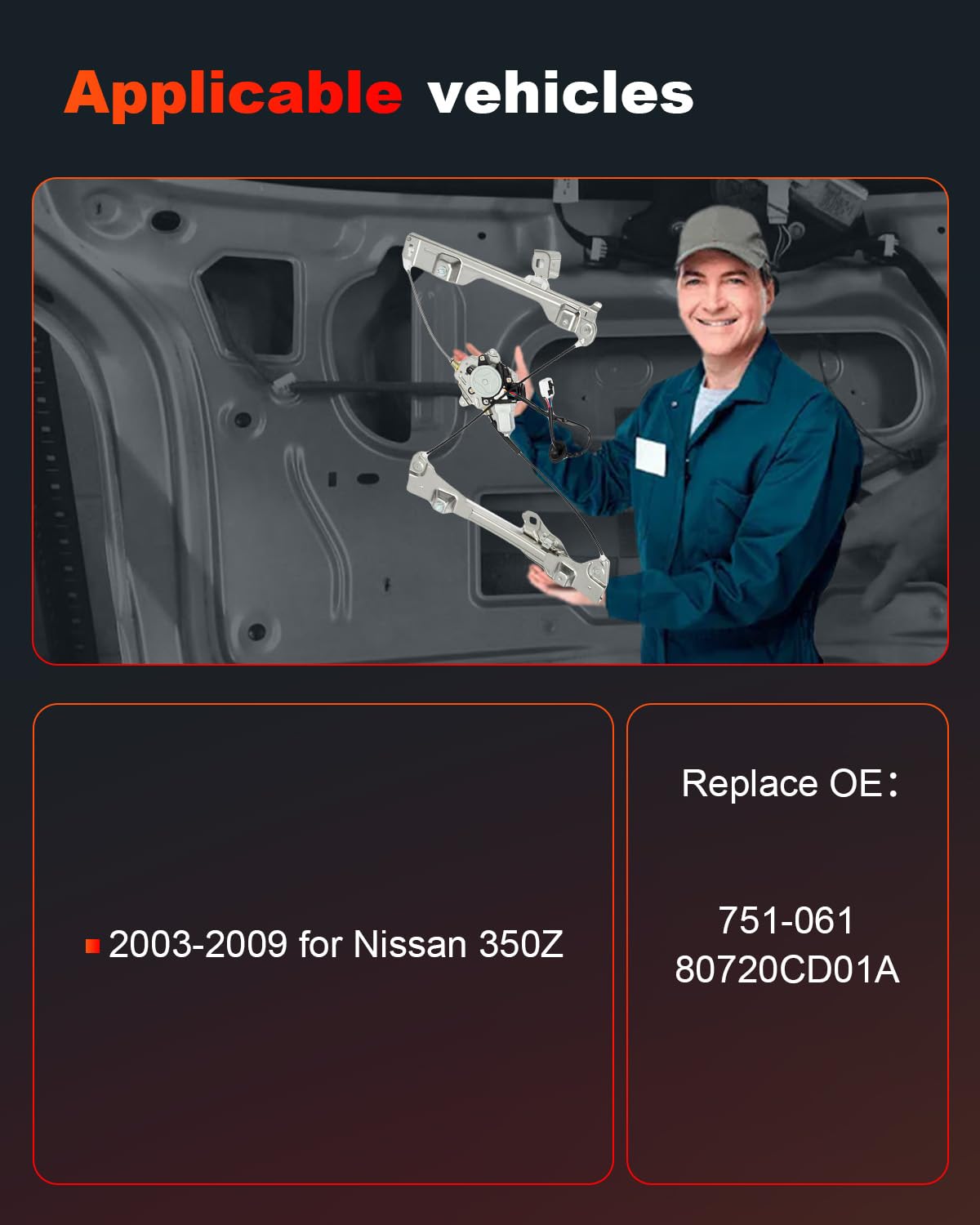 - Compatível com: 2003, 2004, 2005, 2006, 2007, 2008, 2009 para Nissan 350Z. Regulador de Janela de Substituição com Motor.