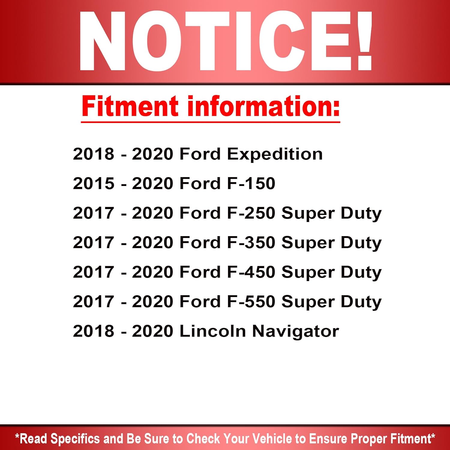 – Compatibilidade: Substituição direta para modelos de 2018 a 2020 da Ford Expedition, 2015 a 2020 da Ford F-150, 2017 a 2020 da Ford F-250, F-350, F-450, F-550 Super Duty e 2018 a 2020 da Lincoln Navigator.