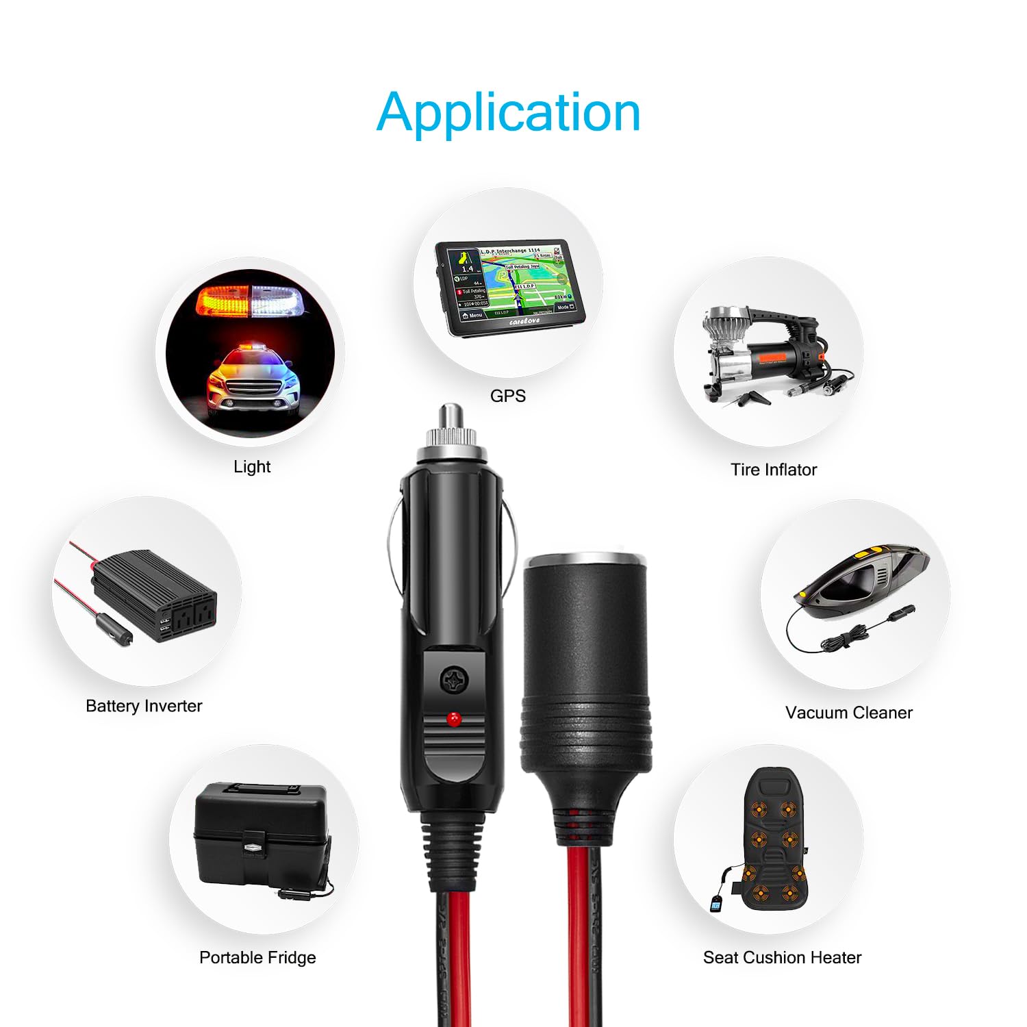 2347 avaliações para Cabo Extensor para Isqueiro de Carro Chanzon 12V/24V – 12Ft UL 16AWG com Fusível de 15A – Conector Pesado para Infladores de Pneus e Aspiradores