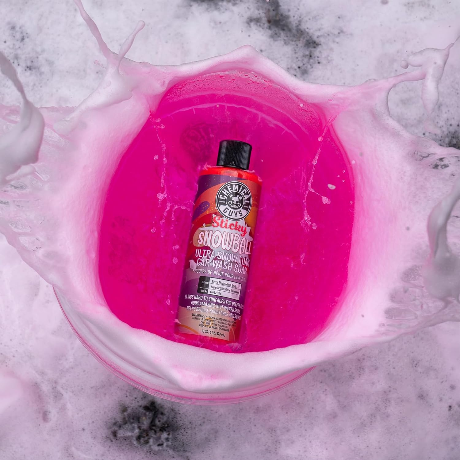 BALDE, PISTOLA DE ESPUMA OU CANHÃO – Não importa se você está lavando com um luva e balde, uma pistola de espuma conectada à mangueira do jardim ou um canhão de espuma conectado à sua lavadora de alta pressão, o Sticky Snowball Ultra Snow Foam é o sabão ideal para proporcionar uma lavagem rica em espuma e espuma abundante.