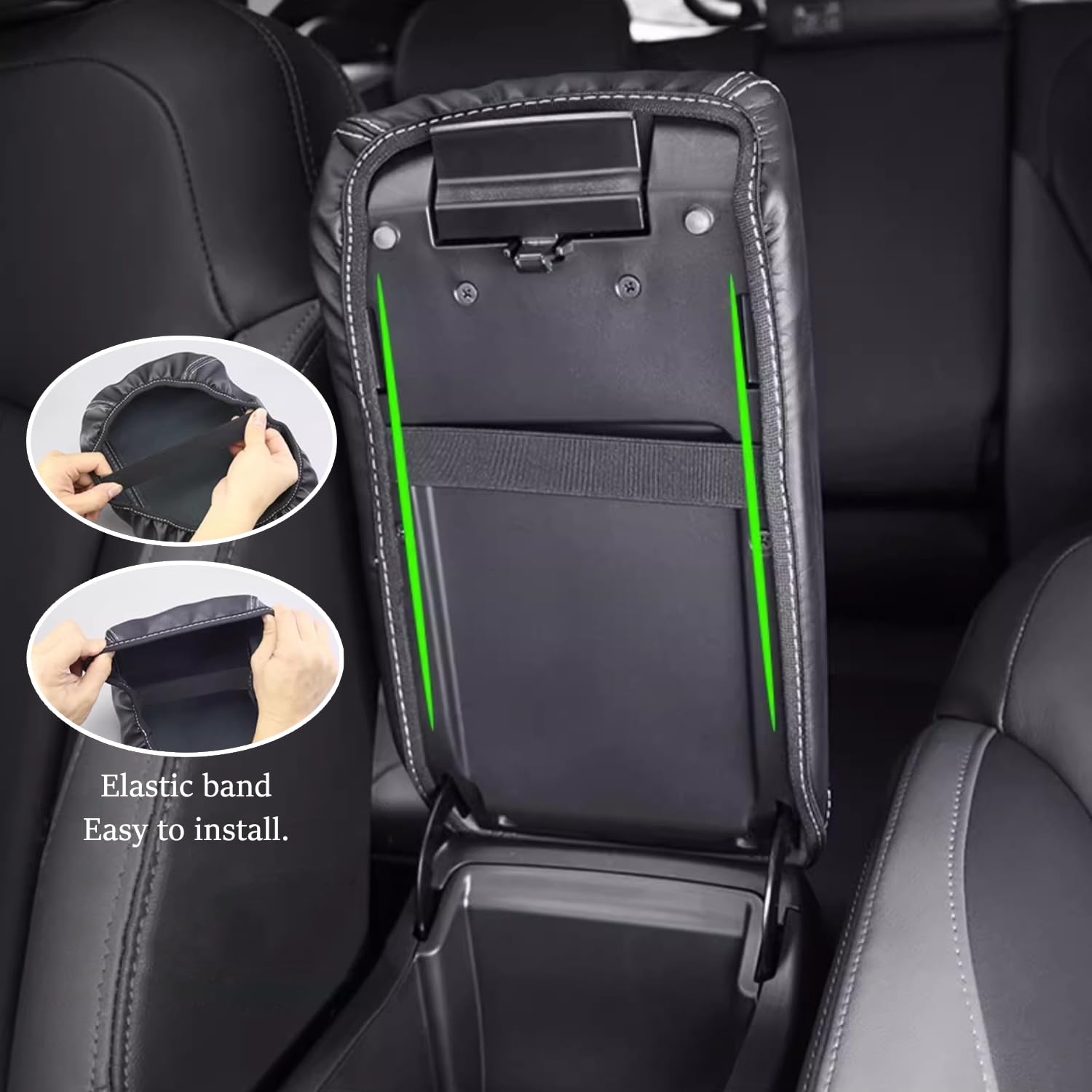 2. Posicione a capa sobre o apoio de braço, alinhando-a com as bordas do console.