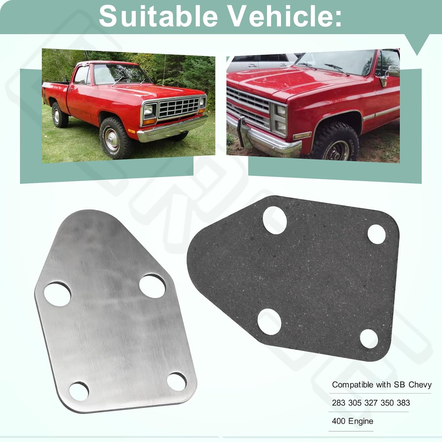 9 avaliações para Placa de Bloqueio de Bomba de Combustível Cromada com Junta para Motor Small Block Chevy SBC 283 305 327 350 383 400