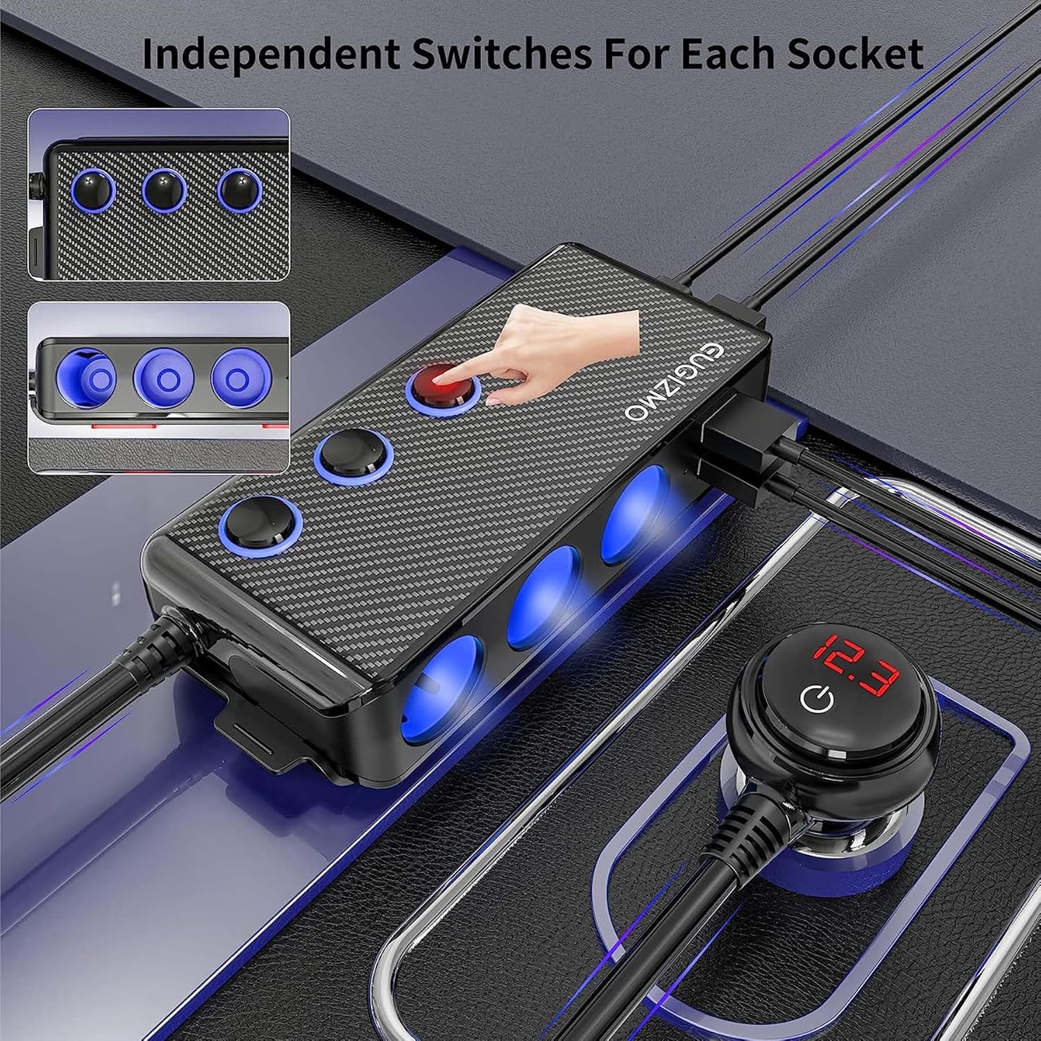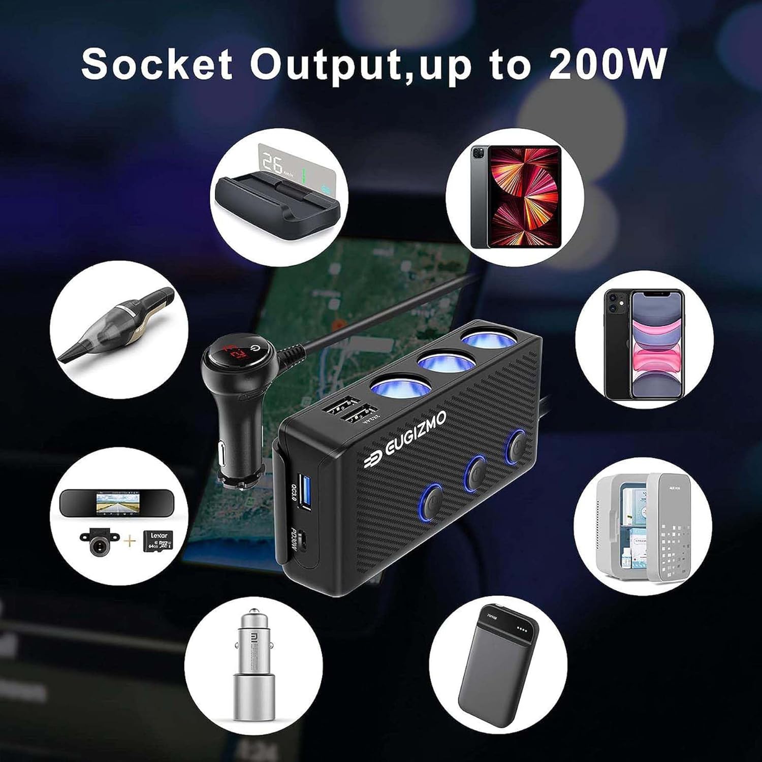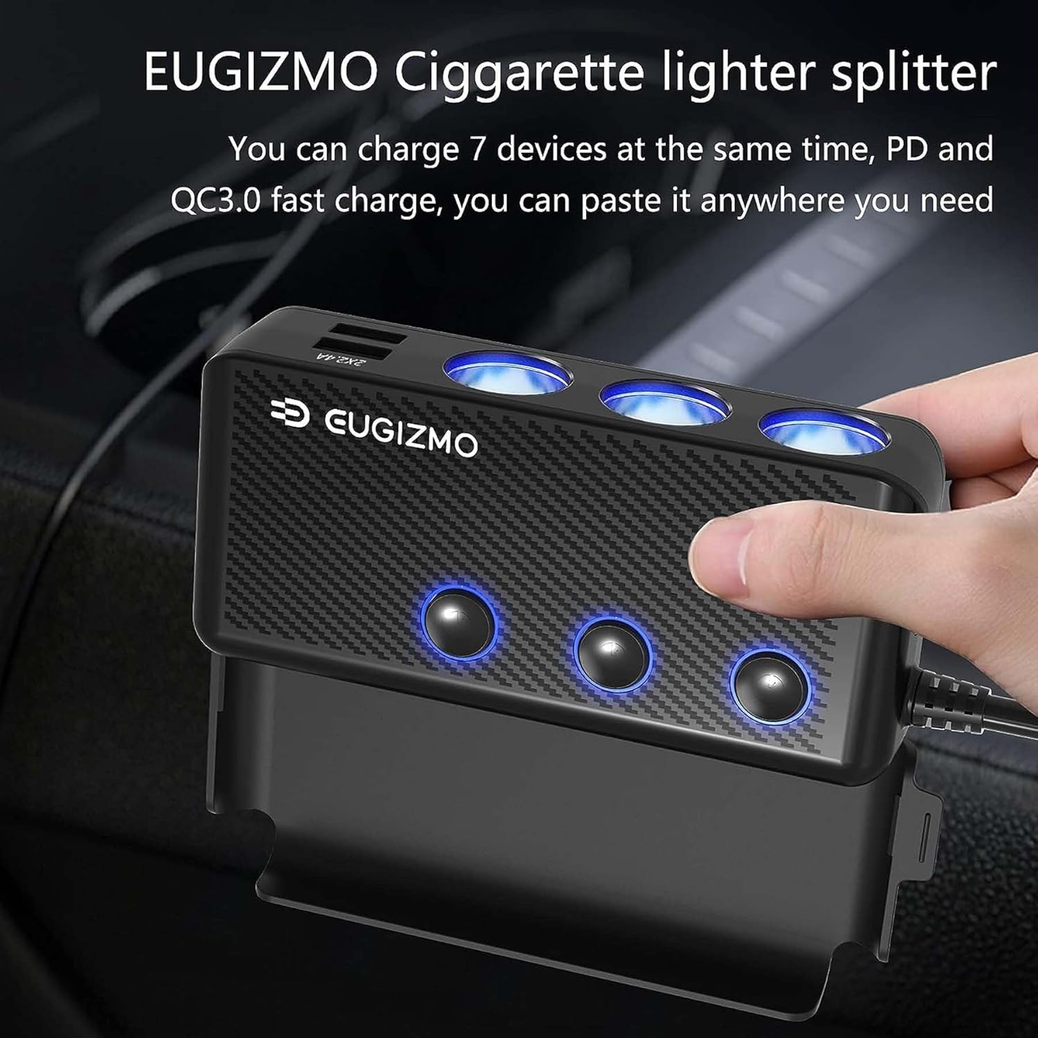 O Cigarette Lighter Plug Splitter EUGIZMO é a solução perfeita para quem precisa de múltiplas fontes de energia em veículos. Com uma potência total de até 200W, este adaptador de isqueiro para carro possui 4 portas de carregamento e 3 soquetes de isqueiro, permitindo que até 7 dispositivos sejam carregados simultaneamente em veículos de 12V/24V. Cada soquete conta com um interruptor independente, além de um interruptor mestre na parte frontal, proporcionando liberdade total no gerenciamento do carregamento. Não se preocupe mais com a falta de energia durante suas viagens; com o EUGIZMO, você nunca ficará sem uma fonte de carga.