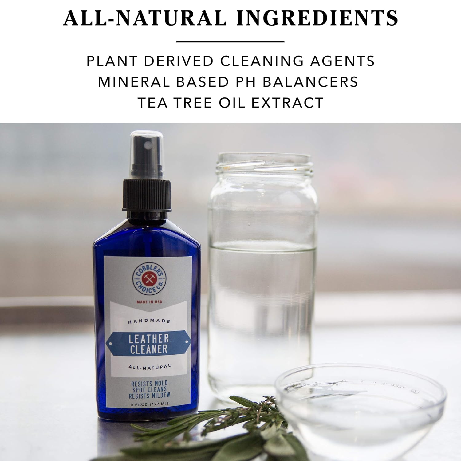Formulado com ingredientes 100% naturais, o limpador utiliza agentes de limpeza derivados de plantas, equilibradores de pH à base de minerais e extrato de óleo de tea tree. É seguro para uso em couro liso, camurça e couros pull-up, tornando-se uma solução versátil para todos os seus itens de couro.