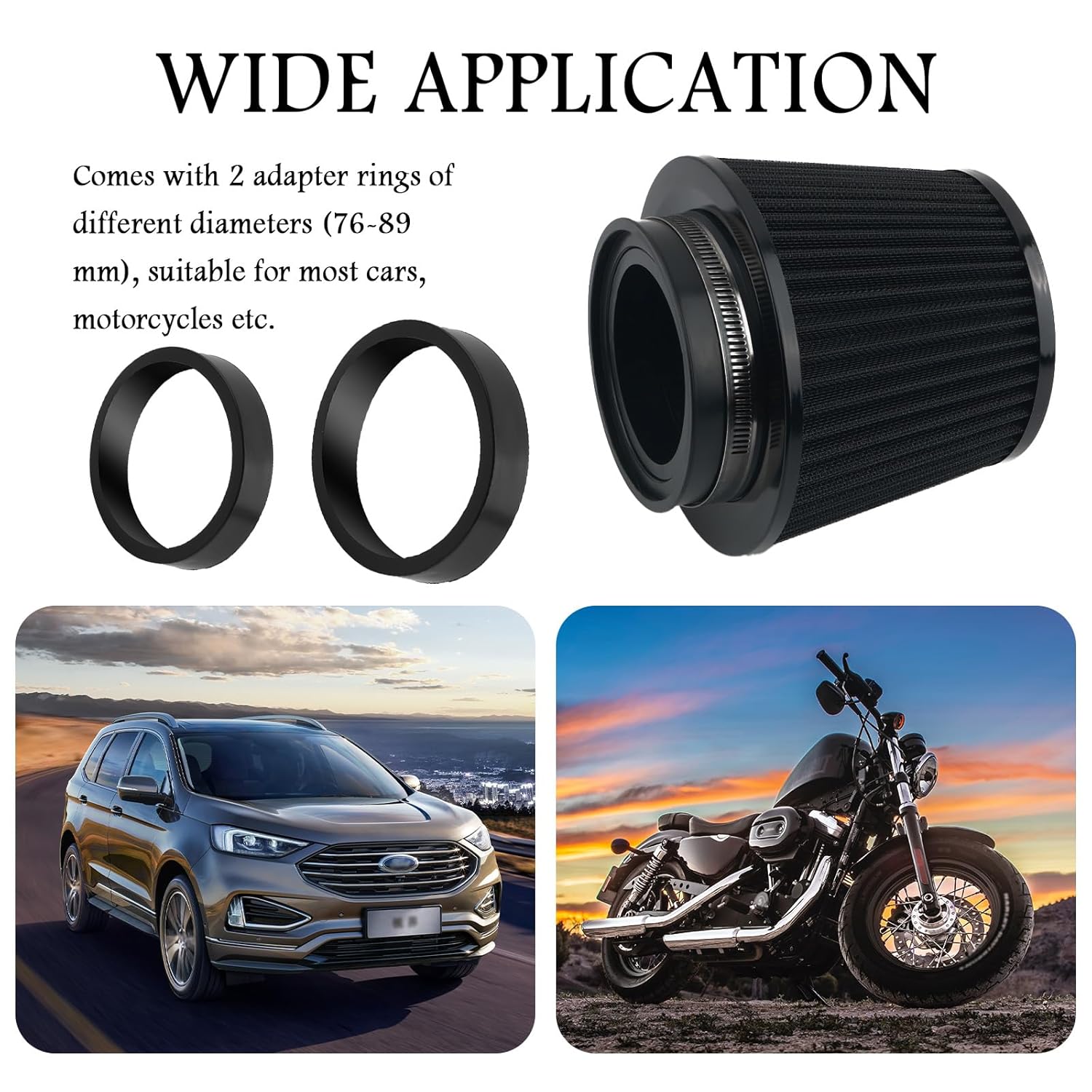 O Filtro de Ar Frio com Anel Adaptador de 76, 89 e 102mm é a solução ideal para quem busca maximizar o desempenho do motor de seu veículo. Este kit de admissão de ar frio foi projetado para oferecer uma combinação perfeita de proteção, eficiência e durabilidade, elevando a performance do seu carro ou moto a um novo patamar.
