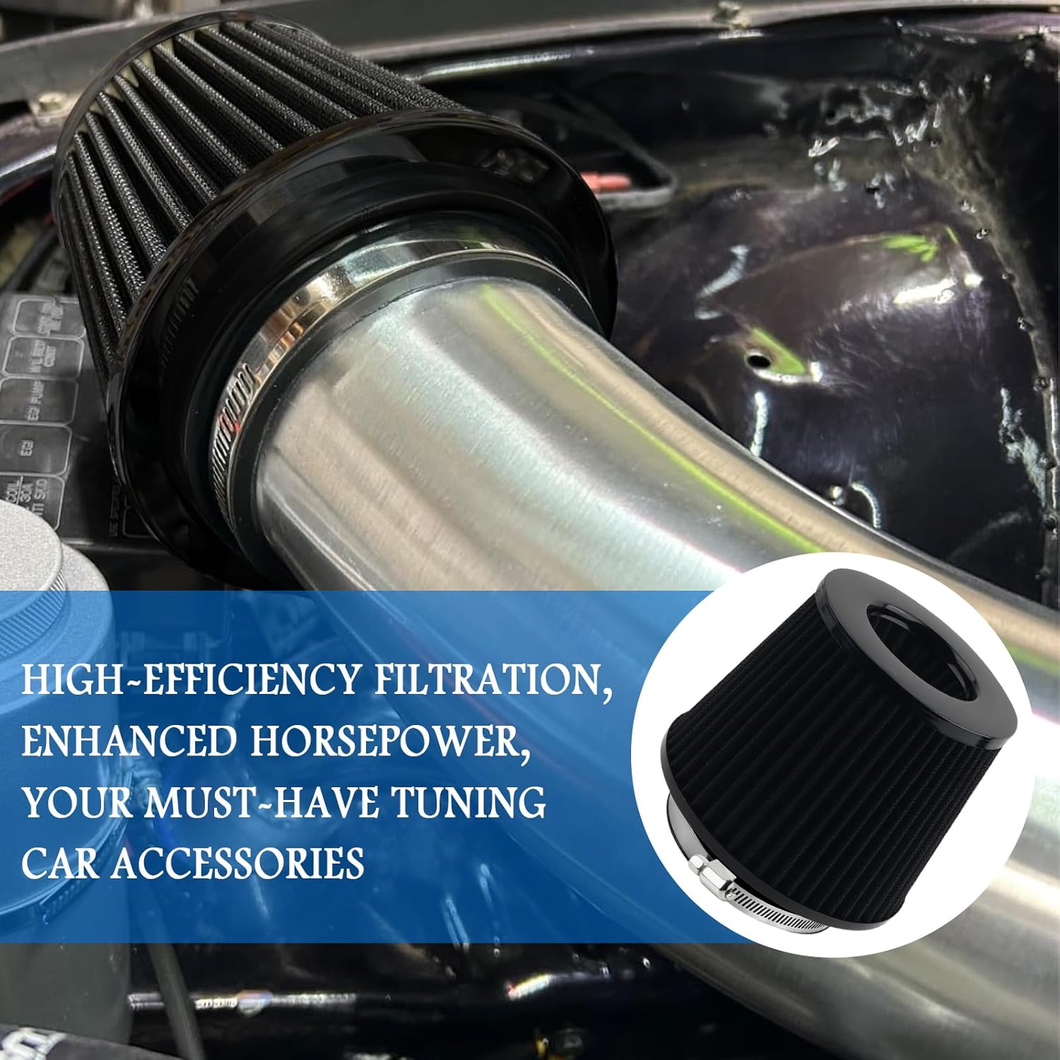 A instalação deste filtro é simples e rápida. Com um clipe ajustável incluído, basta abrir o capô, posicioná-lo no tubo de admissão, escolher a posição correta e apertar os parafusos do clipe para fixá-lo. Essa facilidade de instalação economiza tempo e esforço na modificação do seu veículo.