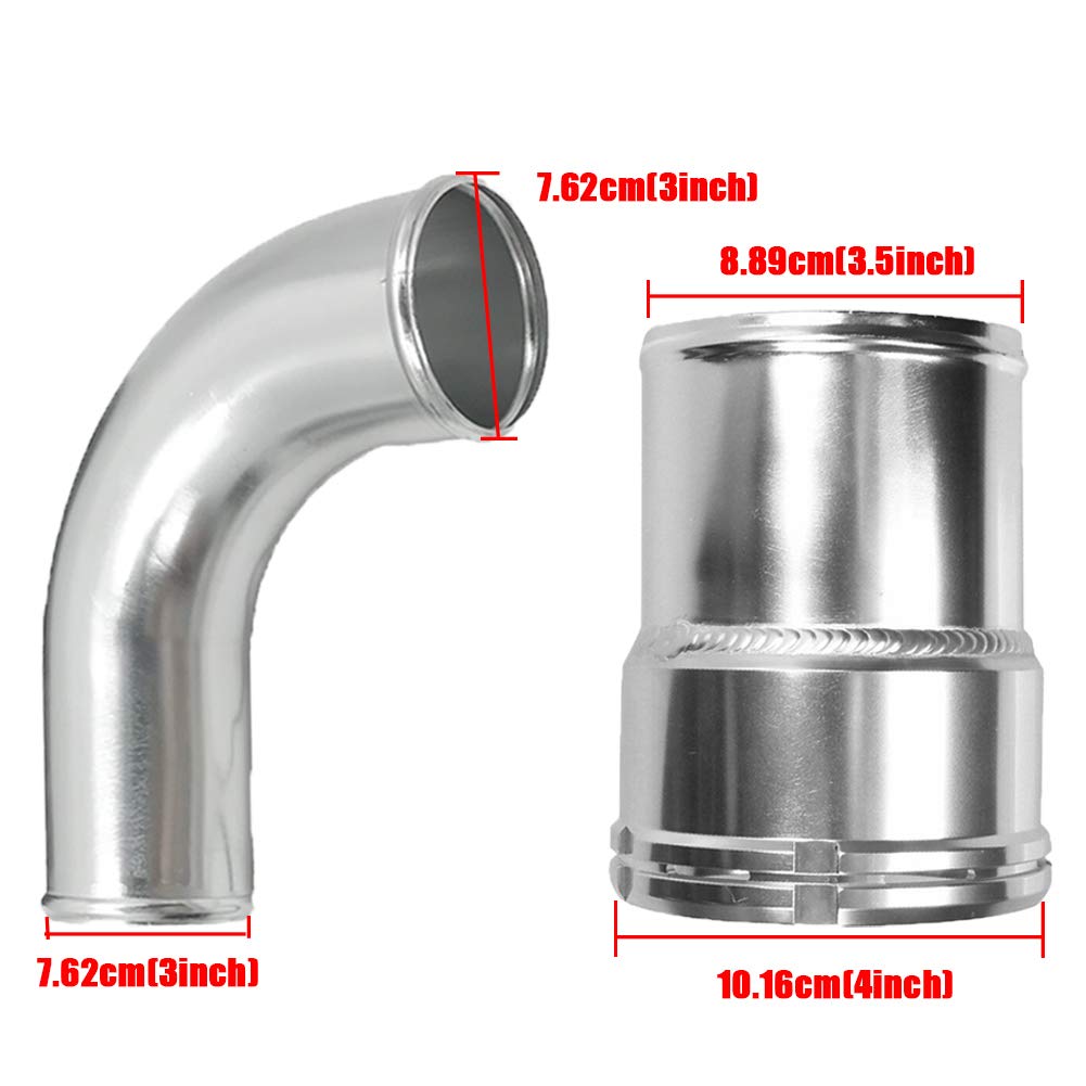 Este kit apresenta um tubo de alumínio CNC, que é mandril dobrado para garantir um fluxo de ar otimizado. O diâmetro do tubo inferior é de 3 polegadas, enquanto o tubo superior possui um diâmetro de 3,5 polegadas, permitindo uma passagem de ar mais eficiente e reduzindo a restrição. As mangueiras de silicone são triplamente reforçadas, capazes de suportar altas temperaturas e pressões, além de minimizar a transferência de vibrações devido a impactos ou movimentos do motor.