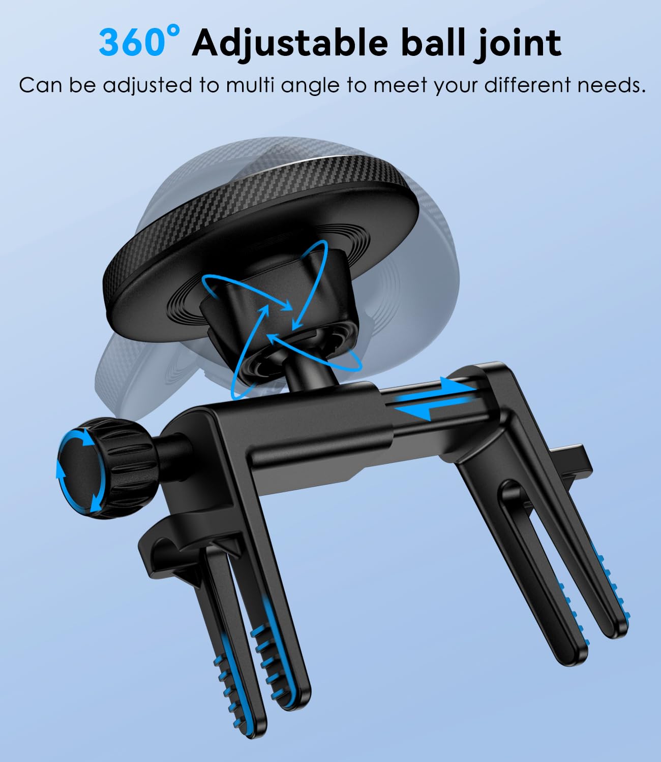 Finally found a cellphone mount that fits into the oddly shaped A/C vent of my vehicle (2023 Mercedes Benz EQE). It is easy to install and the magnetic hold is very strong. Although it held my phone at highway speeds as well as over speed bumps, the vent itself is very loose so the weight of the phone causes the vent to move with smallest movement of the car. It’s no fault of the cellphone mount but the a/c vent itself.