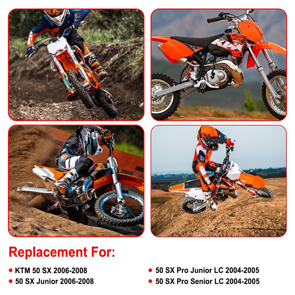 – Compatibilidade: Projetado especificamente para os modelos KTM 50 SX, 50 SX Junior, 50 SX Pro Junior LC e 50 SX Pro Senior LC, garantindo um encaixe perfeito.