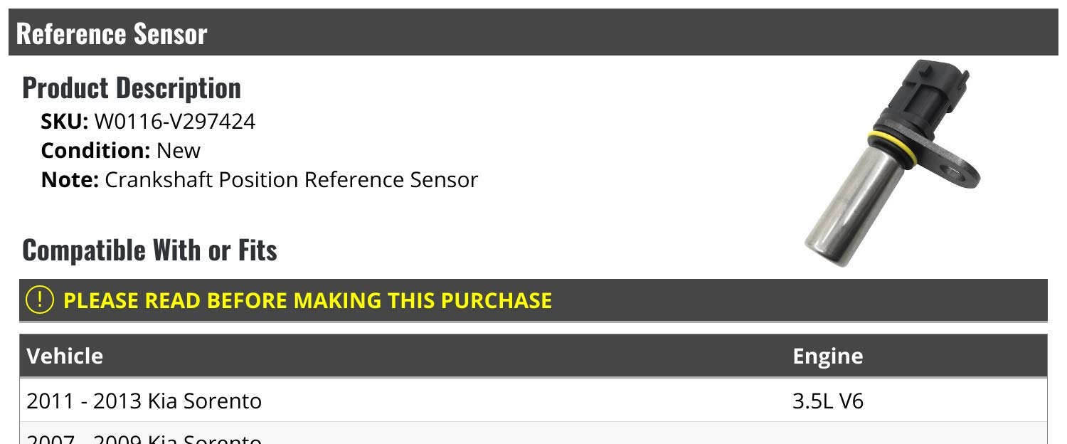### Sensor de Posição do Virabrequim – Compatível com Kia Sorento 2007-2009, 2011-2013 (Exceto 2010)