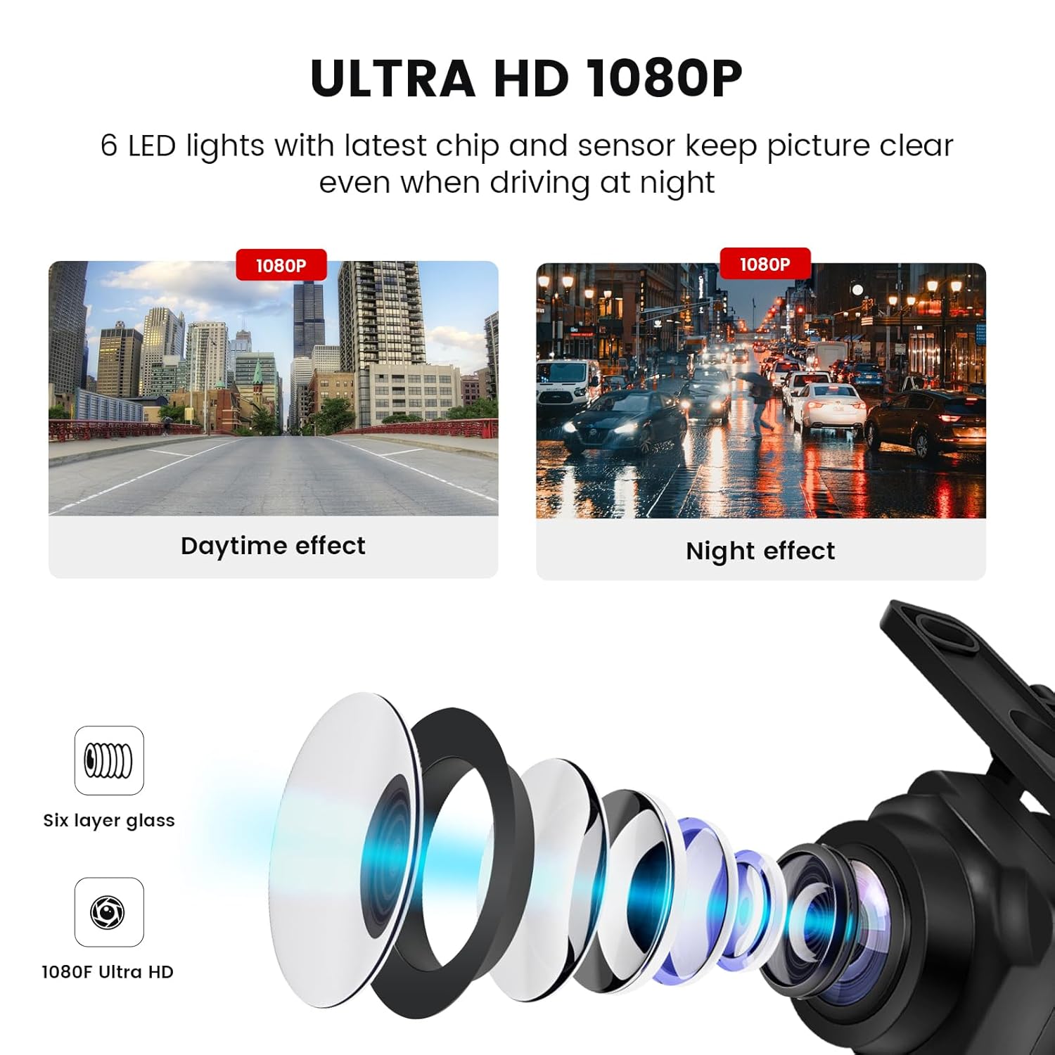 Câmera de Ré Dasaita 1080P com Ângulo de Visão de 170°, IP68 à Prova d'Água - Kit Universal para Carros, Caminhonetes, SUVs, Vans e RVs