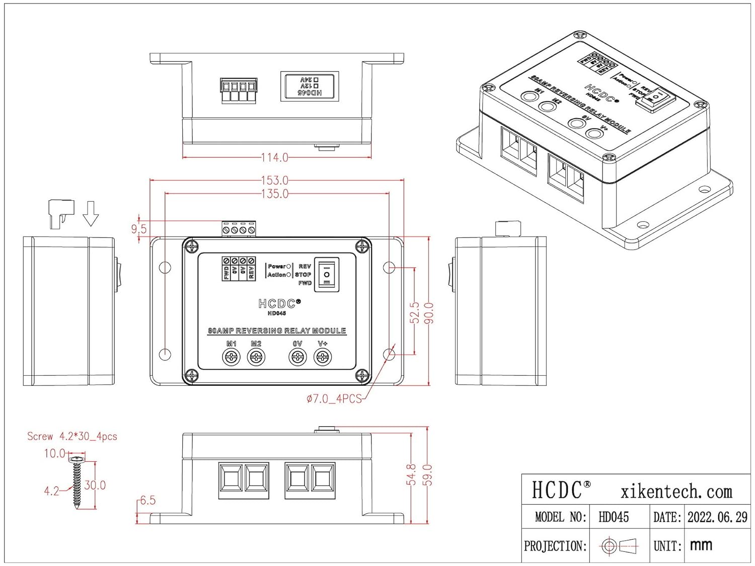 DC12V 80 Amp Forward and Reverse Relay Module for Motor/Linear Actuator. We have a lot of off grid systems on our ranch and many of those are 12 volt. This forward/reverse module could be useful for so many projects. The fact that you can operate it remotely is very useful. Always wanted an automatic chicken door and this could be a component for that. We also thought of this for a solar array tracker to get optimum energy from our panels. We don’t have a specific project at the moment, so we’ll just give our input on quality, functionality, and value. The module comes with instructions and the plug that is used for remote operation, along with some mounting screws. It’s a nice looking unit and seems very well made. The input/output connections are quite large and should carry a lot of amperage. I hooked it up to an old car radiator fan and it worked perfectly. Then I hooked it up to an old DC squirrel cage heater fan, and it worked also. I realize that you would not normally reverse a fan motor because the blades don’t push much air in reverse, but for testing purposes, this unit performed perfectly. The green LED light comes on when it’s powered up and the “action” light changes color with direction. There is a stop position on the switch to let the motor stop before reversing, which is great. This is a nice module and it looks and feels of good quality. This should be a very useful piece of equipment for the do-it-yourselfer. I can think of a few different ways to accomplish the same function but for the price this module is a no brainer. Absolutely yes I recommend this.