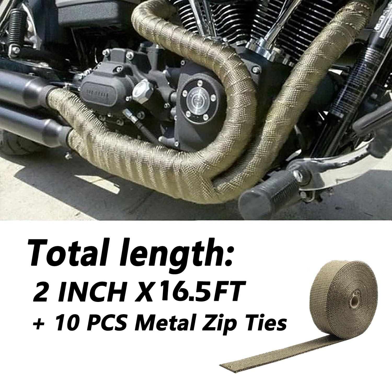 Descrição do Produto: Deecam Titanium Muffler Exhaust Pipe Heat Wrap Roll, 2” x 16.5′, Motorcycle