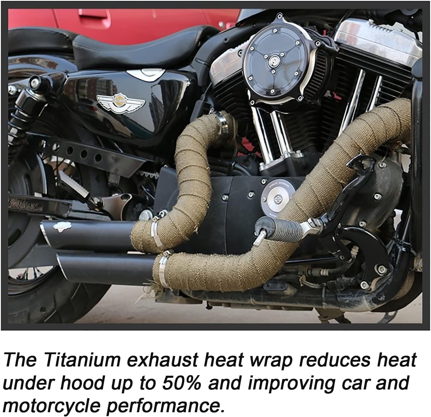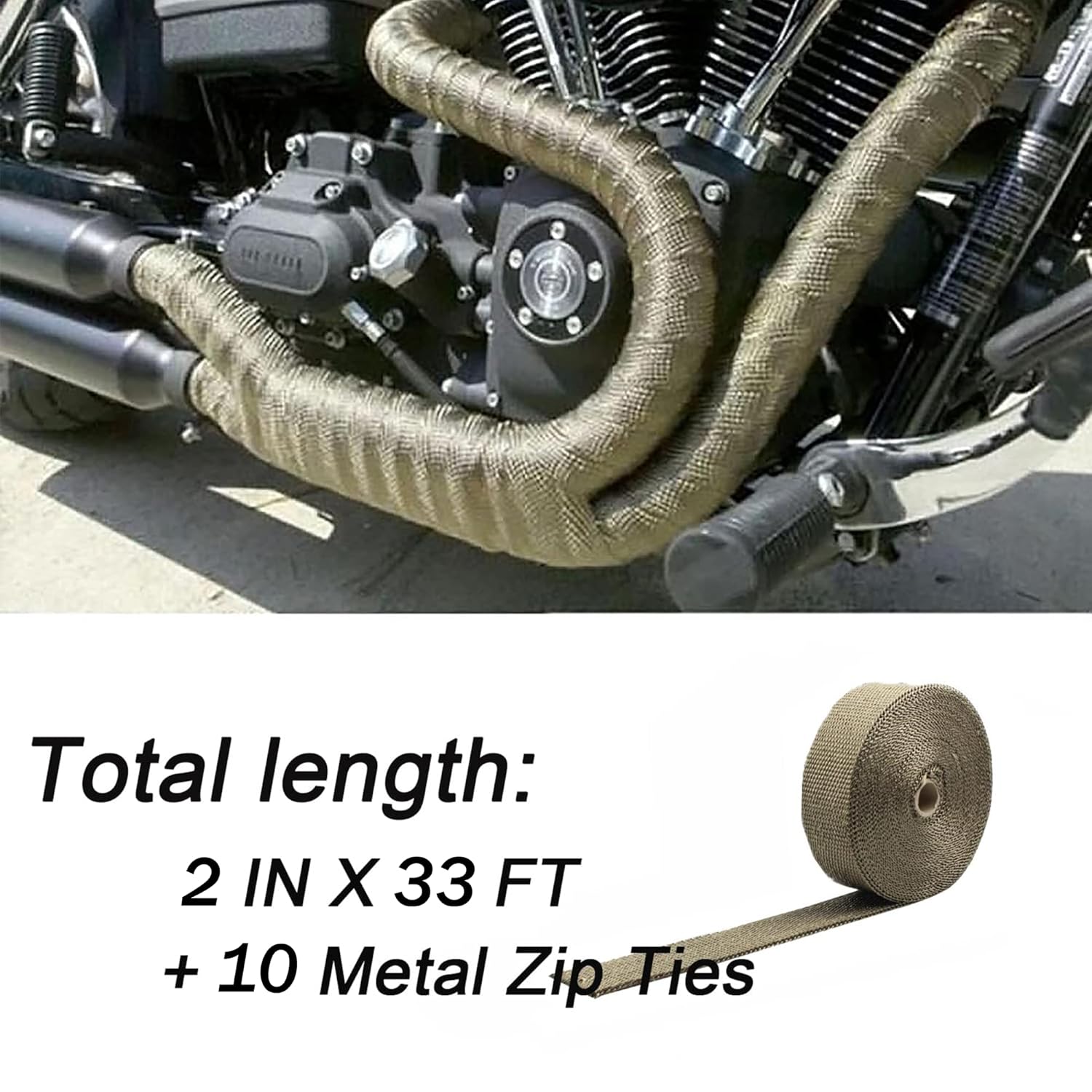 I used this to wrap the exhaust pipe of my KTM motorcycle to shield the rear shock oil reservoir from excessive heat. For best results, I recommend trimming it to the proper length and soaking it in hot water for about 20 minutes before wrapping it tightly and securing it with the included stainless zip ties. I’m pleased with the outcome and believe this preventive step is a worthwhile investment to protect an expensive shock component.