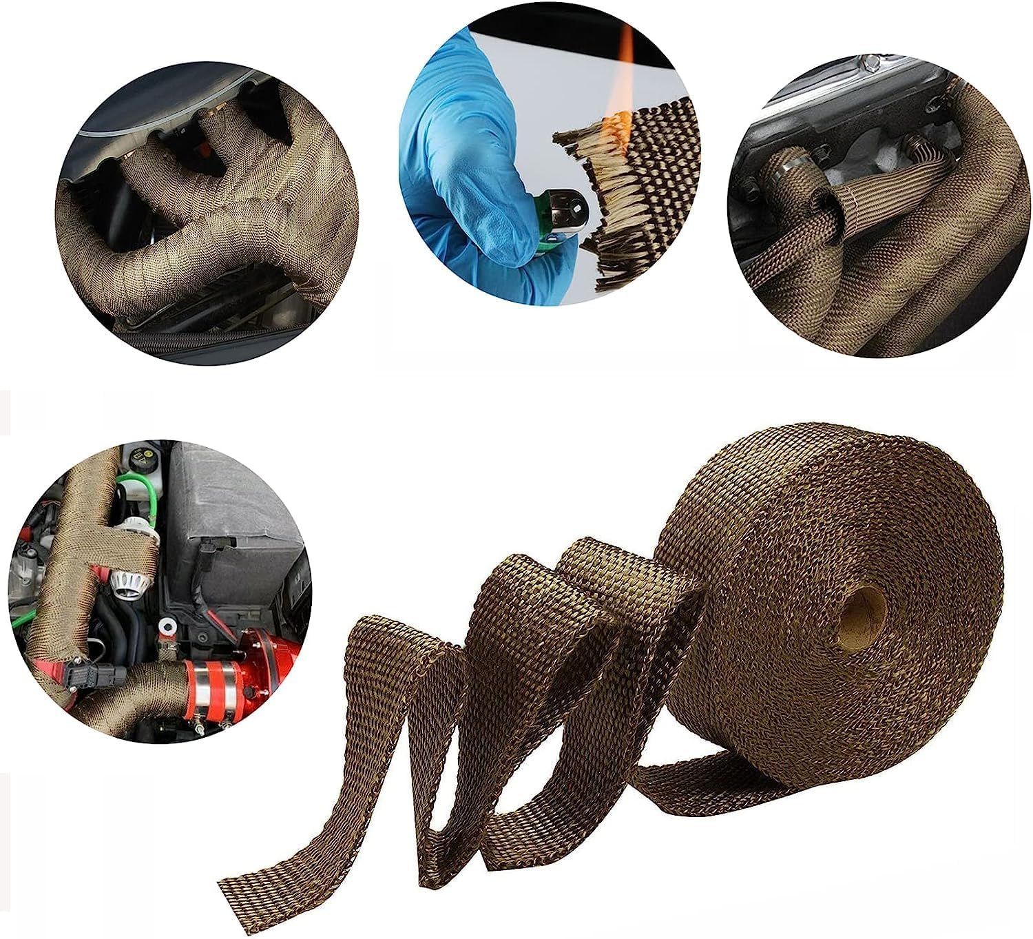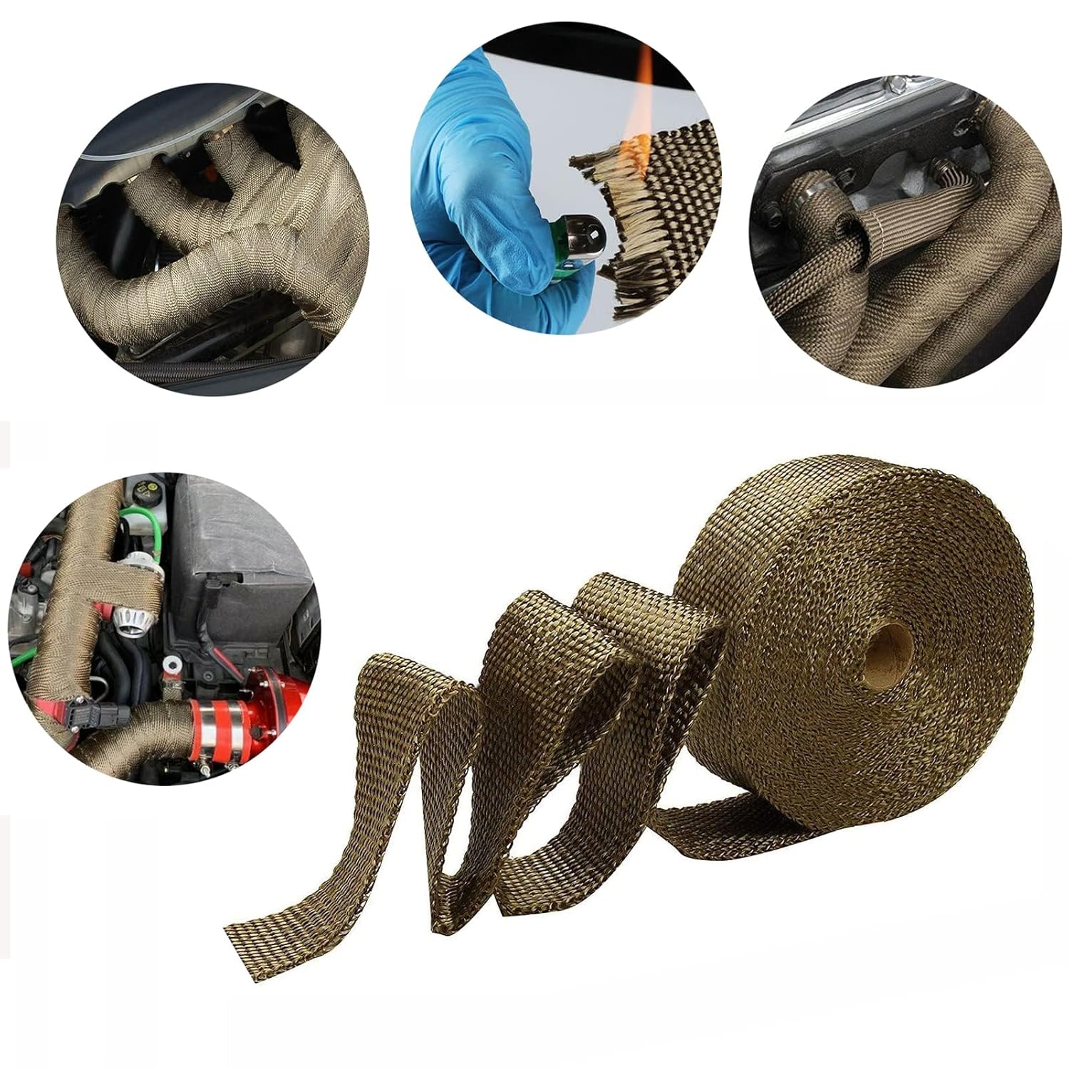Este produto é amplamente utilizado devido à sua flexibilidade e resistência. A fita de desempenho em titânio é altamente resistente à abrasão, derramamentos de óleo, altas temperaturas e danos por vibração. O envoltório de isolamento para tubos de escape pode ser utilizado em uma variedade de aplicações, incluindo isolamento de tubos de escape de aquecedores de água a gás, tubos de gás domésticos, e também para isolamento e isolamento acústico de tubos de escape de motocicletas, carros, tratores e caminhões.