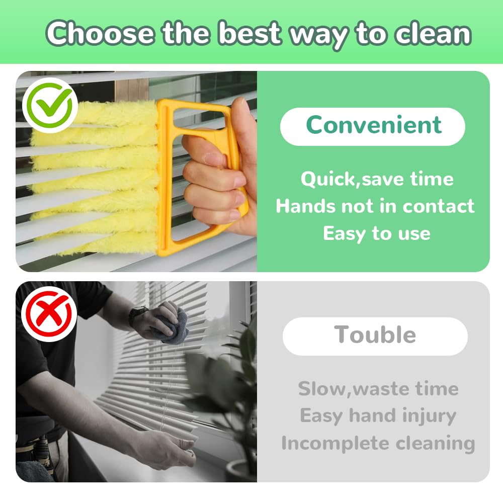 Além disso, este conjunto de escovas mini duster para persianas é versátil e ideal para uma ampla gama de tarefas de limpeza. Perfeito para remover gordura e sujeira de frestas de janelas, persianas e condicionadores de ar, ele também se destaca na limpeza de ventiladores de carros, portas de chuveiro deslizantes, geladeiras, teclados, trilhos de portas e muito mais.