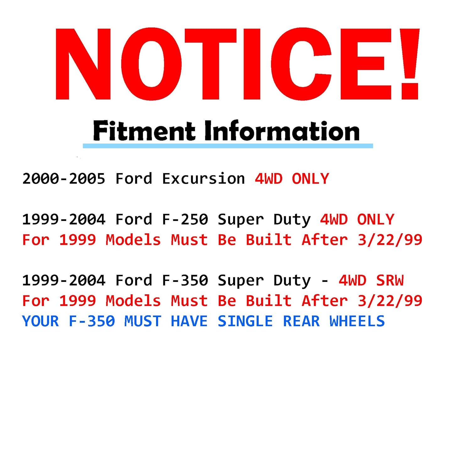 – Compatibilidade: Projetado especificamente para Ford Excursion 2000-2005 (modelos 4WD) e F-250/F-350 Super Duty 1999-2004 (modelos 4WD construídos após 22/03/1999).