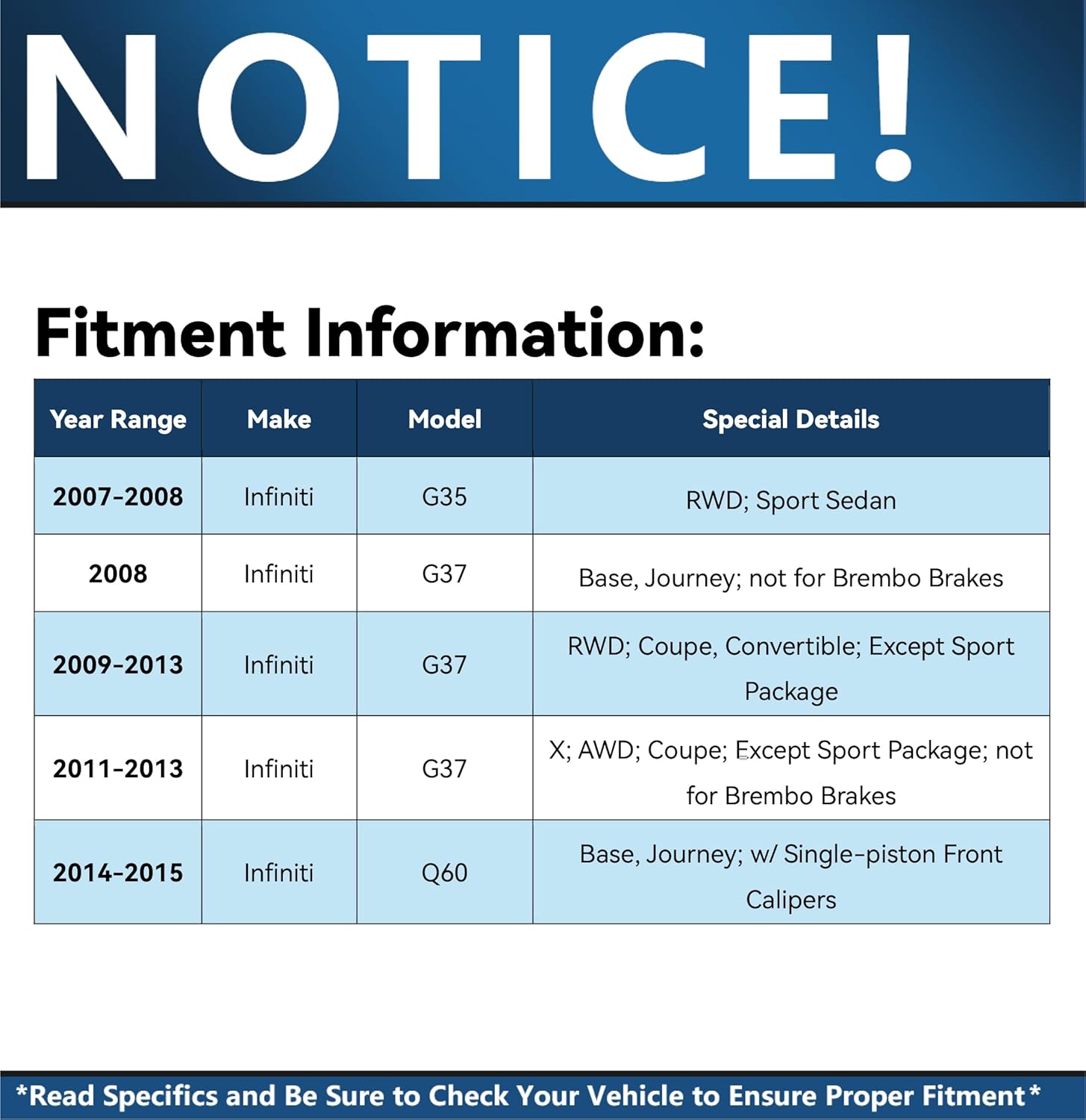 – 2014-2015 Infiniti Q60 (Base, Journey; com pinças dianteiras de 1 pistão)