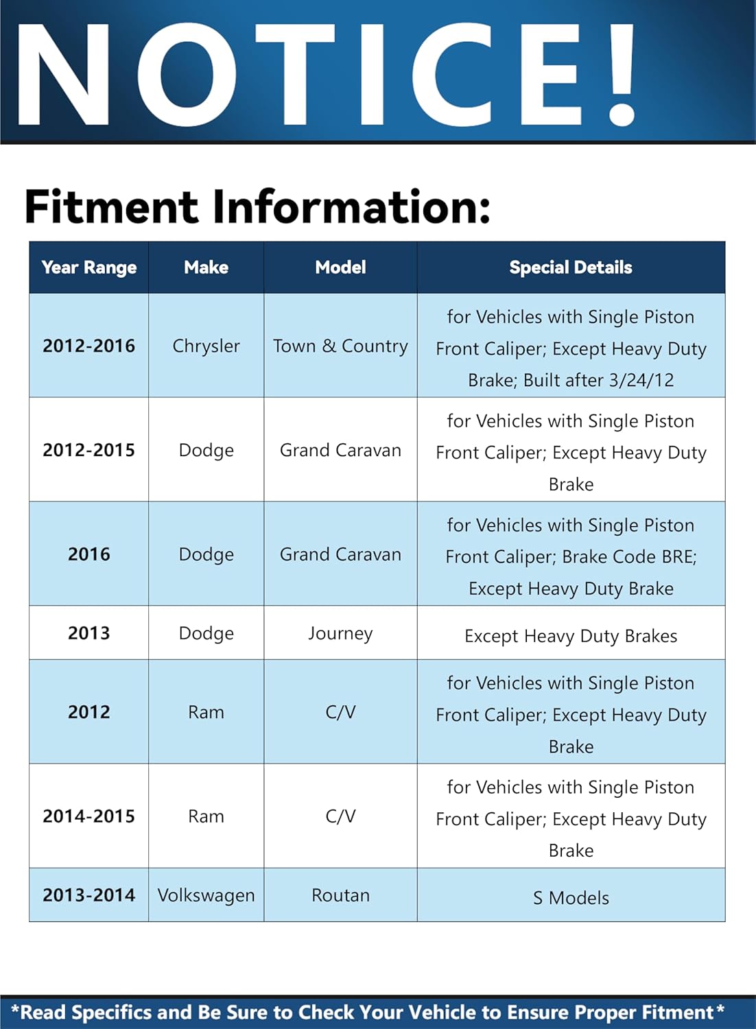 – Dodge Grand Caravan (2012-2015) – para veículos com caliper frontal de pistão único (exceto freios pesados).