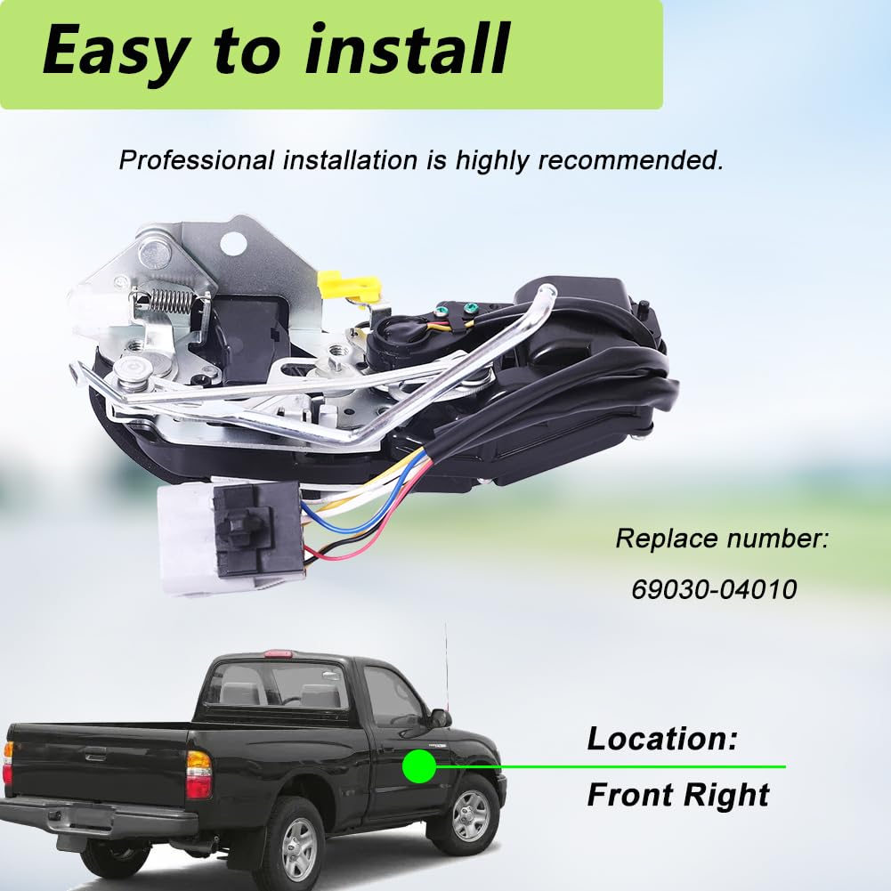 O Atuador de Fechadura de Porta Frontal Direito é a solução ideal para os proprietários de Tacoma dos anos 1998 a 2004 que enfrentam problemas com a fechadura da porta do passageiro. Fabricado com materiais metálicos de alta resistência e uma carcaça plástica robusta, este atuador é projetado para resolver falhas comuns, como a incapacidade de desbloquear a fechadura, dificuldades para abrir a porta e ruídos anormais durante a operação. Com este componente, você pode restaurar a funcionalidade da fechadura da porta, garantindo segurança e conforto ao acessar seu veículo.