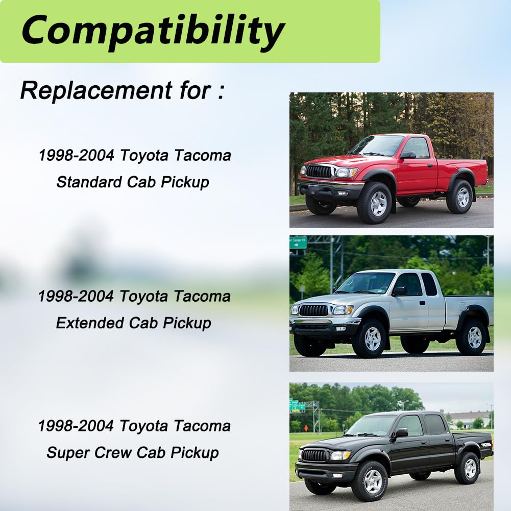 – Compatibilidade Exata: Projetado especificamente para modelos Tacoma de 1998 a 2004, assegurando um encaixe perfeito.