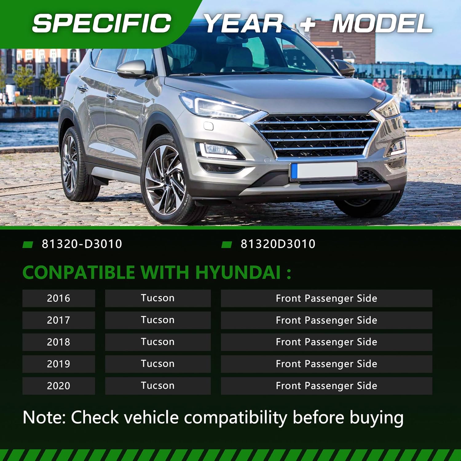 - Modelos Compatíveis: “Lado Dianteiro do Passageiro” – Compatível com Hyundai Tucson 2016, 2017, 2018, 2019, 2020.