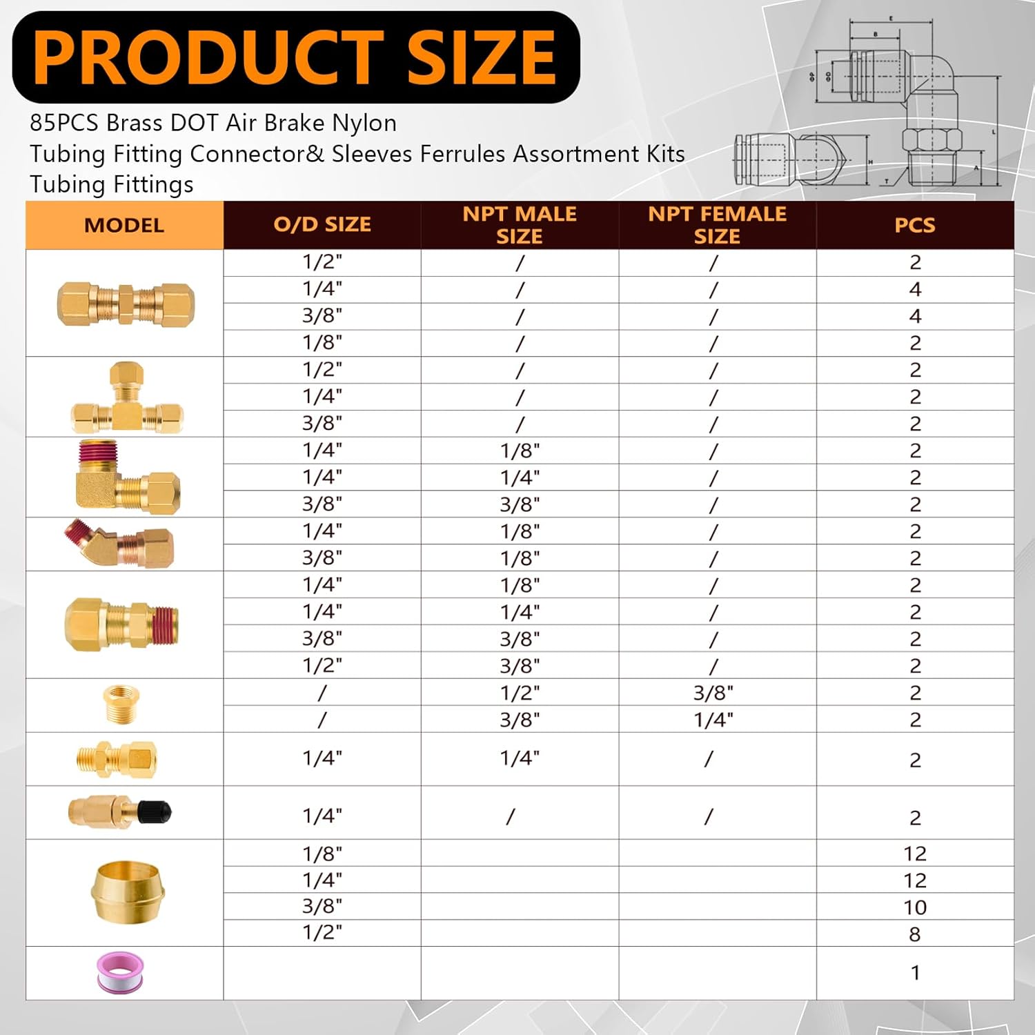 Had 2 of the size, 1/2” X 1/2” mpt that I needed 1 of now have a spare. I keep this kit in the Motorhome for the next time I run over an elk laying in the middle of the road!