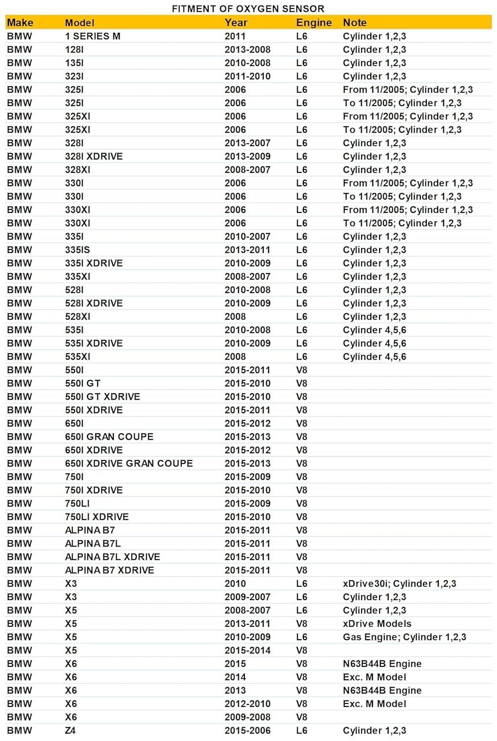 – Substituição para BMW 1 Series M 2011 Cilindro 1,2,3 3L
