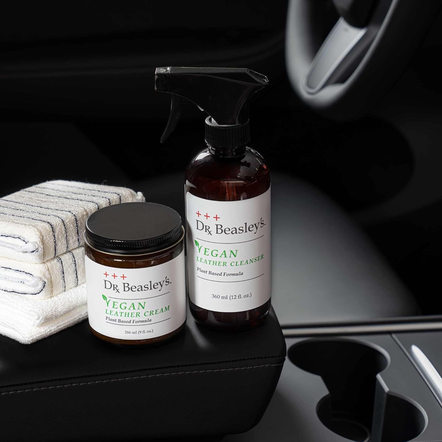 O Dr. Beasley’s Vegan Leather Kit é um sistema completo de limpeza e condicionamento projetado especificamente para manter a beleza e a durabilidade de itens em couro vegano, como bancos de carro, sapatos, mochilas, bolsas, jaquetas e muito mais. Este conjunto de produtos de limpeza e condicionamento, seguro para veganos, garante que seu couro sintético permaneça livre de sujeira e manchas, proporcionando uma sensação luxuosamente macia e maleável.