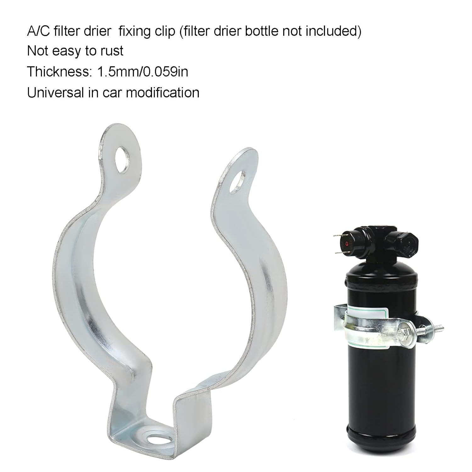 O Drier Filter Mounting Bracket é um suporte de alta qualidade projetado para fixar o secador de filtro do ar condicionado em veículos automotivos e motocicletas. Com um diâmetro interno de aproximadamente 74mm (2.91in), este suporte é essencial para garantir o funcionamento adequado do sistema de refrigeração do seu carro. A instalação deste clamp é simples e direta, permitindo que você economize tempo e esforço, sem a necessidade de perfurações ou soldagens.