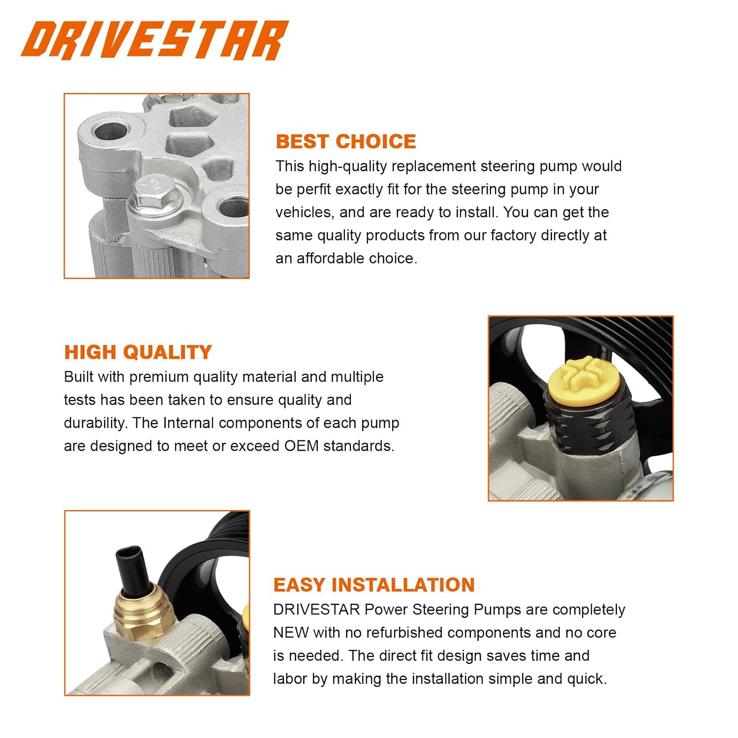 - Compre com Confiança: Cada bomba de direção DRIVESTAR vem com uma garantia de 12 meses. Estamos comprometidos em fornecer produtos e serviços de qualidade. Em caso de dúvidas ou problemas, nossa equipe está à disposição para oferecer uma solução satisfatória.