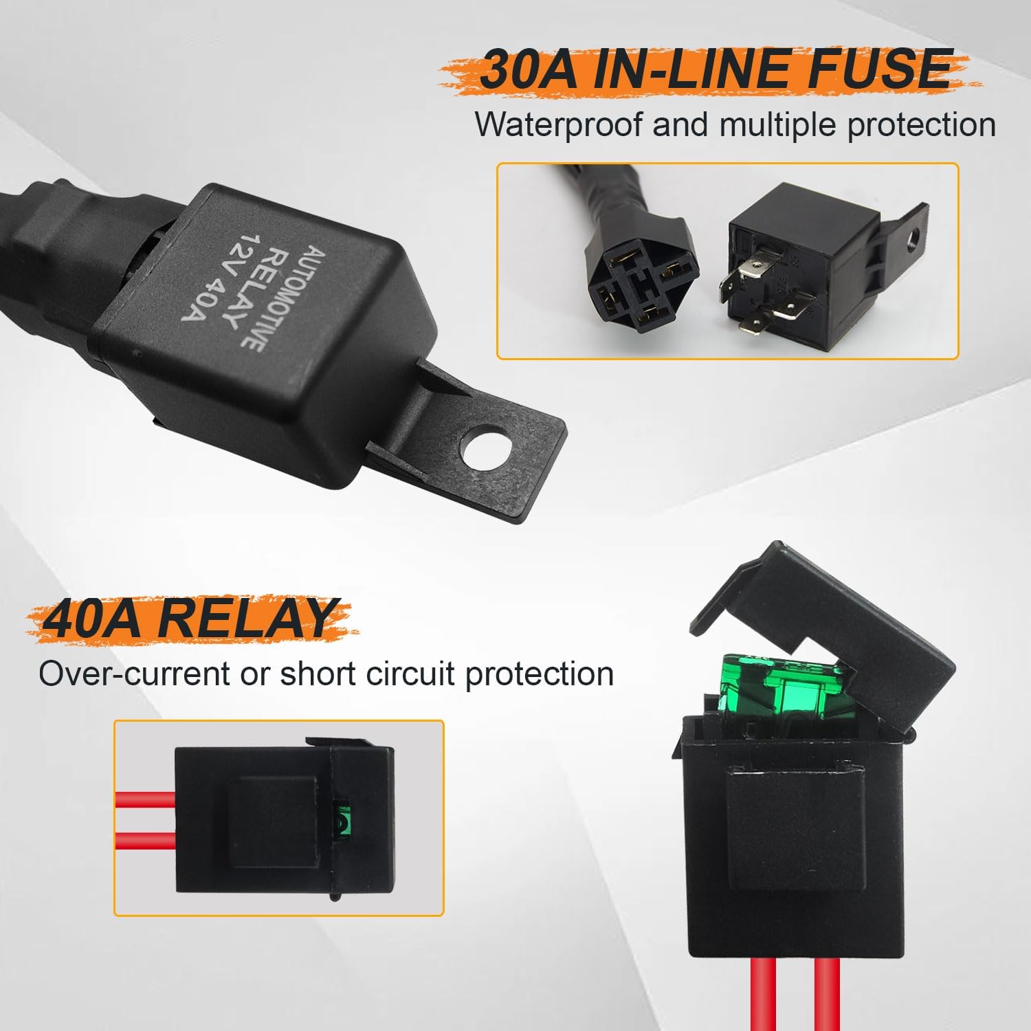– PROTEÇÃO DO CIRCUITO: O fusível inline à prova d’água e o relé garantem múltiplas proteções de segurança. Isso significa que seu veículo estará protegido contra danos em caso de sobrecarga ou curto-circuito, proporcionando tranquilidade durante o uso.