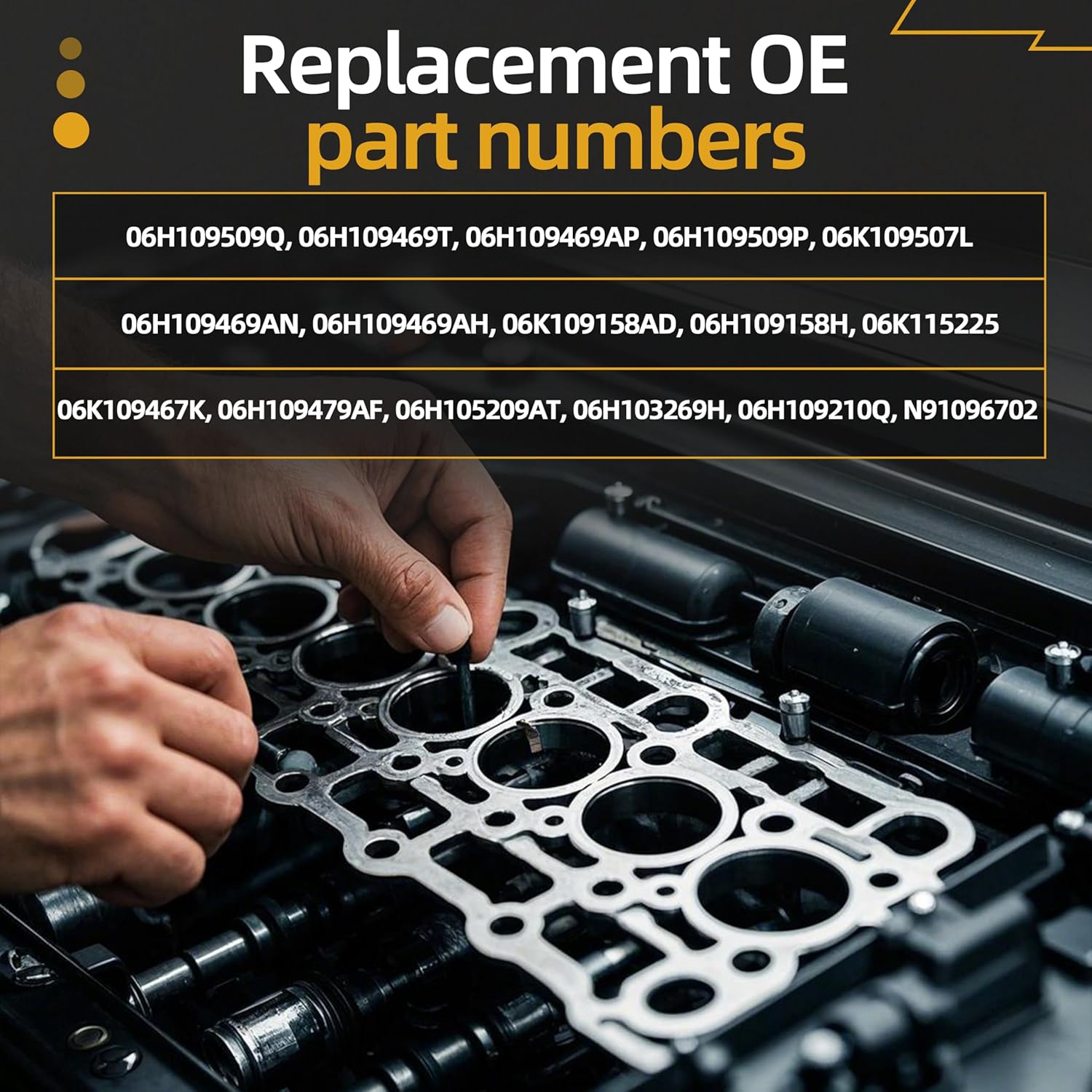 O kit de corrente de distribuição substitui as seguintes peças: 06H109509Q, 06H109469T, 06H109469AP, 06H109509P, 06H109469AN, 06H109469AH, 06K109158AD, 06H109158H, 06K115225, 06K109507L, 06K109467K, 06H109479AF, 06H105209AT, 06H103269H, 06H109210Q, N91096702.