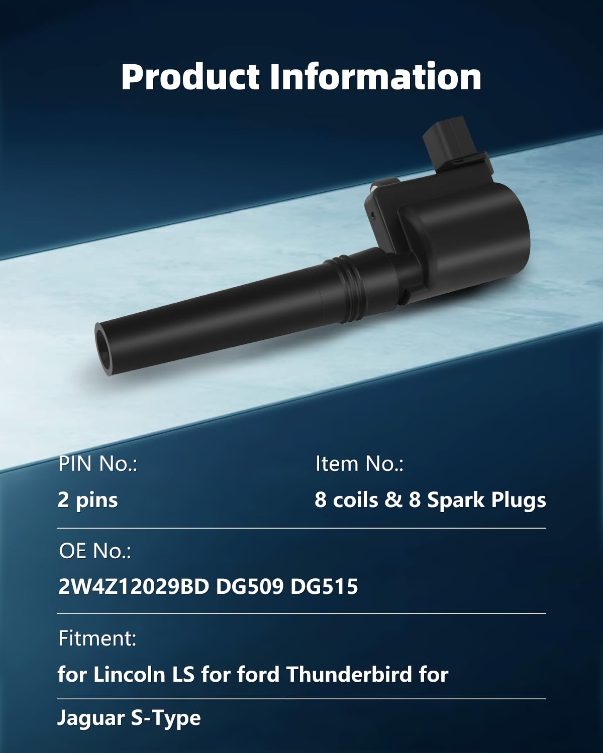 3 avaliações para Bobinas de Ignição ECCPP DG499 com 8 Velas de Ignição Iridium para Ford, Lincoln e Jaguar – Compatível com Thundebird, LS e S-Type 3.9L 4.0L 4.2L V8 – DG509 DG515