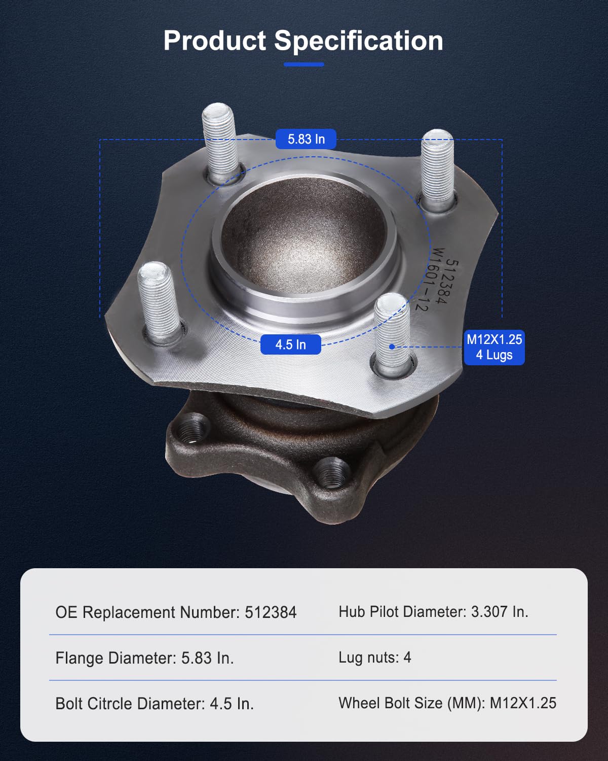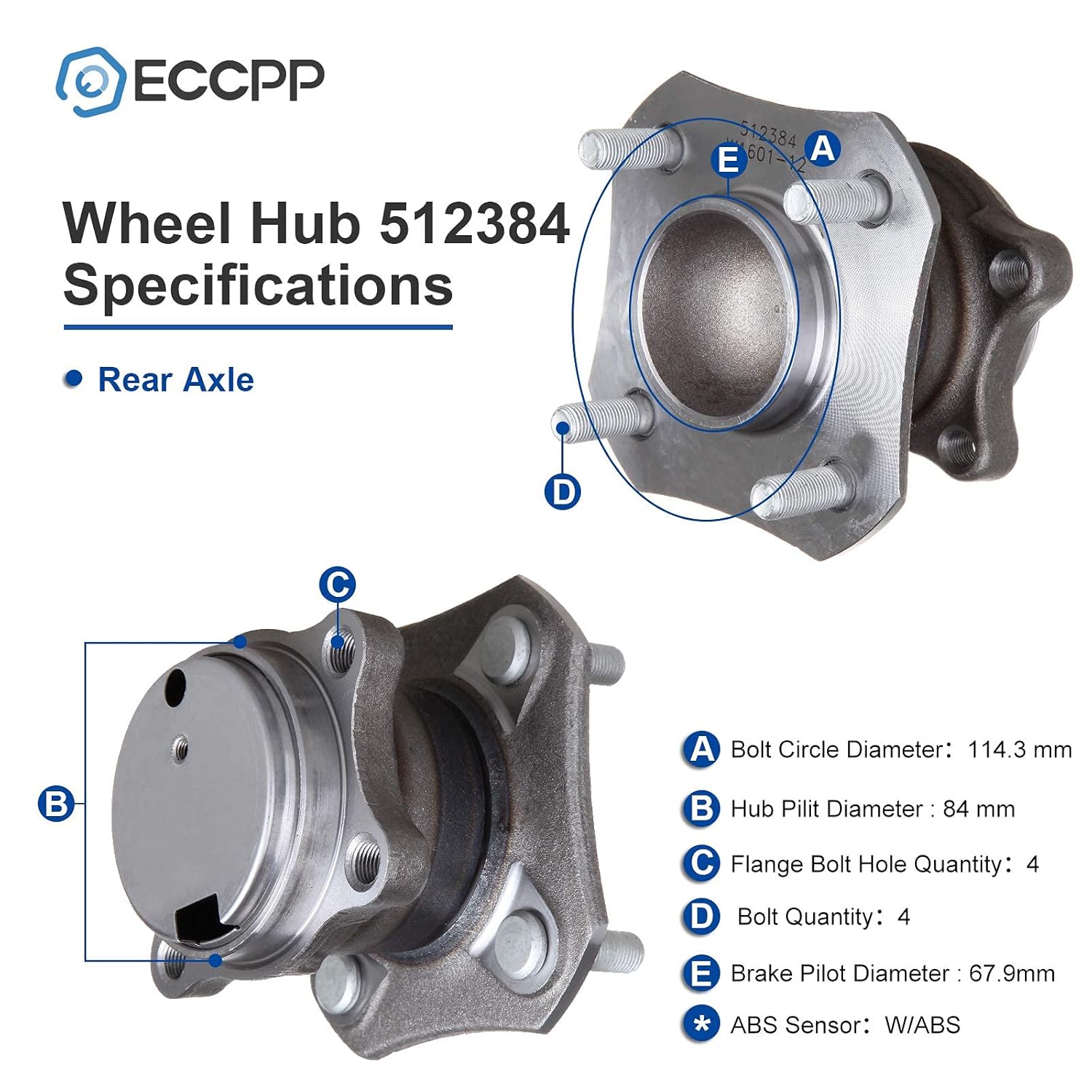- PARÂMETROS DO CUBO DE RODA: OE 512384, 4 Lugs, Eixo Traseiro, Sistema ABS