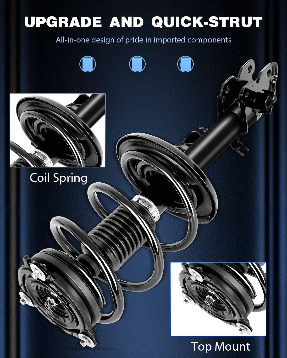 - QUALIDADE: Fabricado sob rigorosos padrões ISO/TS16949, este conjunto de amortecedores é feito de aço mola SAE9254 de alta qualidade, que proporciona resistência, durabilidade e proteção contra corrosão. O tratamento de superfície especial aumenta a tolerância a vibrações e temperaturas extremas.