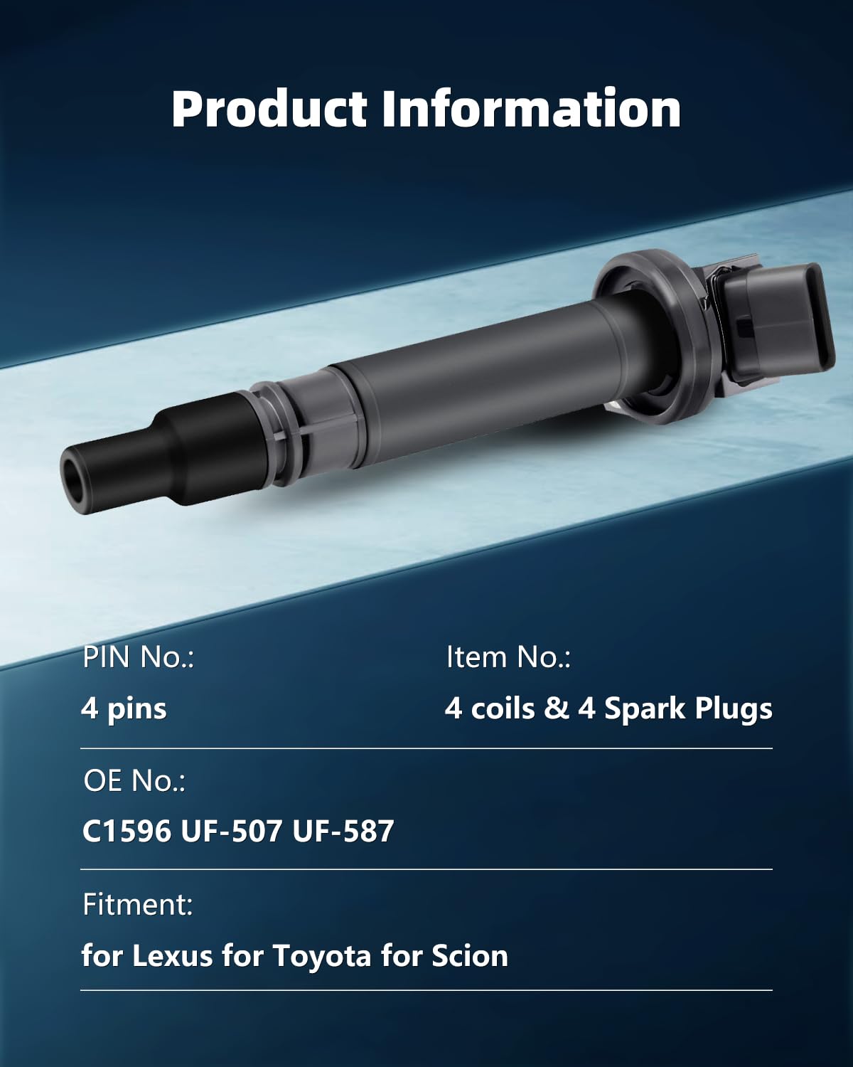 O ECCPP UF507 é um conjunto de 4 bobinas de ignição e 4 velas de ignição de irídio, projetado especificamente para veículos Toyota, Lexus e Scion TC com motores L4 de 2.5L e 2.7L. Este produto é a escolha ideal para quem busca não apenas a substituição de peças, mas uma verdadeira atualização no desempenho do motor. Com compatibilidade garantida para modelos como Avalon (2013-2015), Camry (2010-2015), RAV4 (2009-2015), Highlander (2009-2015), Sienna (2011-2013), entre outros, o ECCPP UF507 se destaca pela sua qualidade premium e longa durabilidade.