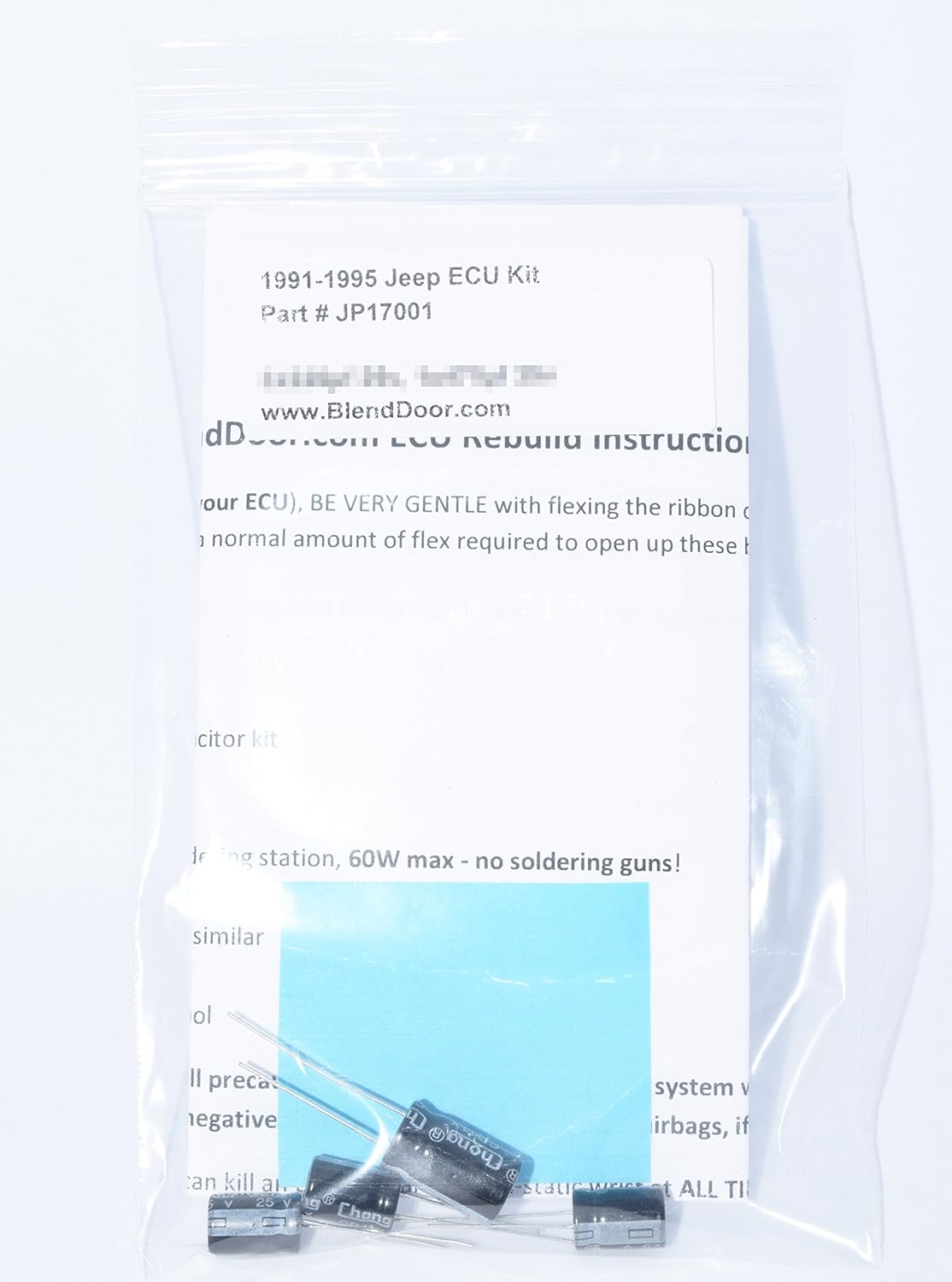 Kit de Capacitores ECU para Jeep Wrangler, Cherokee e Grand Cherokee (1991-1995) melhora a performance do sistema elétrico do veículo. Este kit inclui capacitores de alta qualidade que estabilizam a tensão, reduzindo falhas elétricas e melhorando a resposta do motor. Fácil de instalar, é ideal para restaurar a eficiência do ECU, prolongando a vida útil do veículo e garantindo uma condução mais suave e confiável.