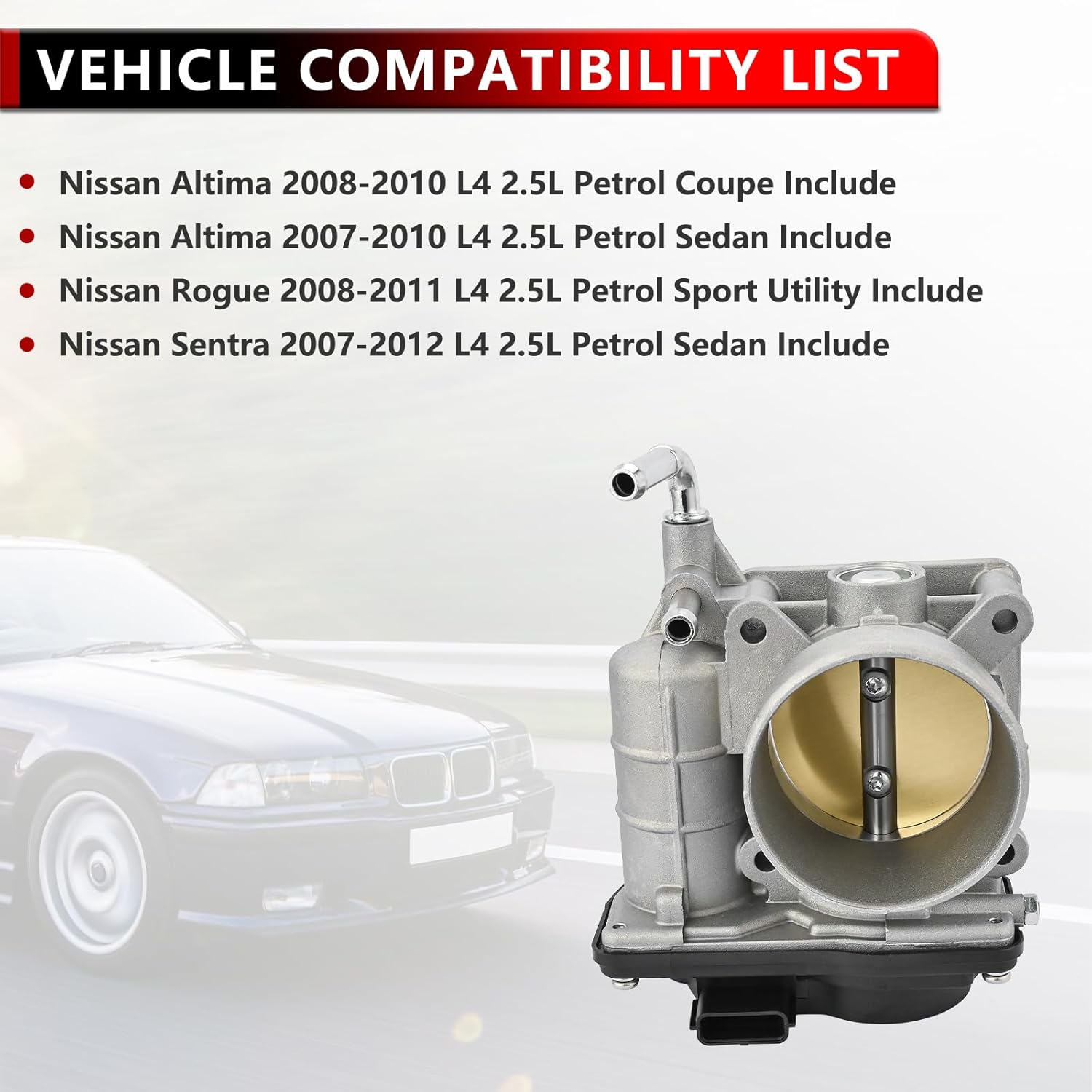 - Compatibilidade – Corpo de Borboleta Eletrônico para Nissan Altima 2007-2012 L4 2.5L; para Nissan Rogue 2008-2013 L4 2.5L.
